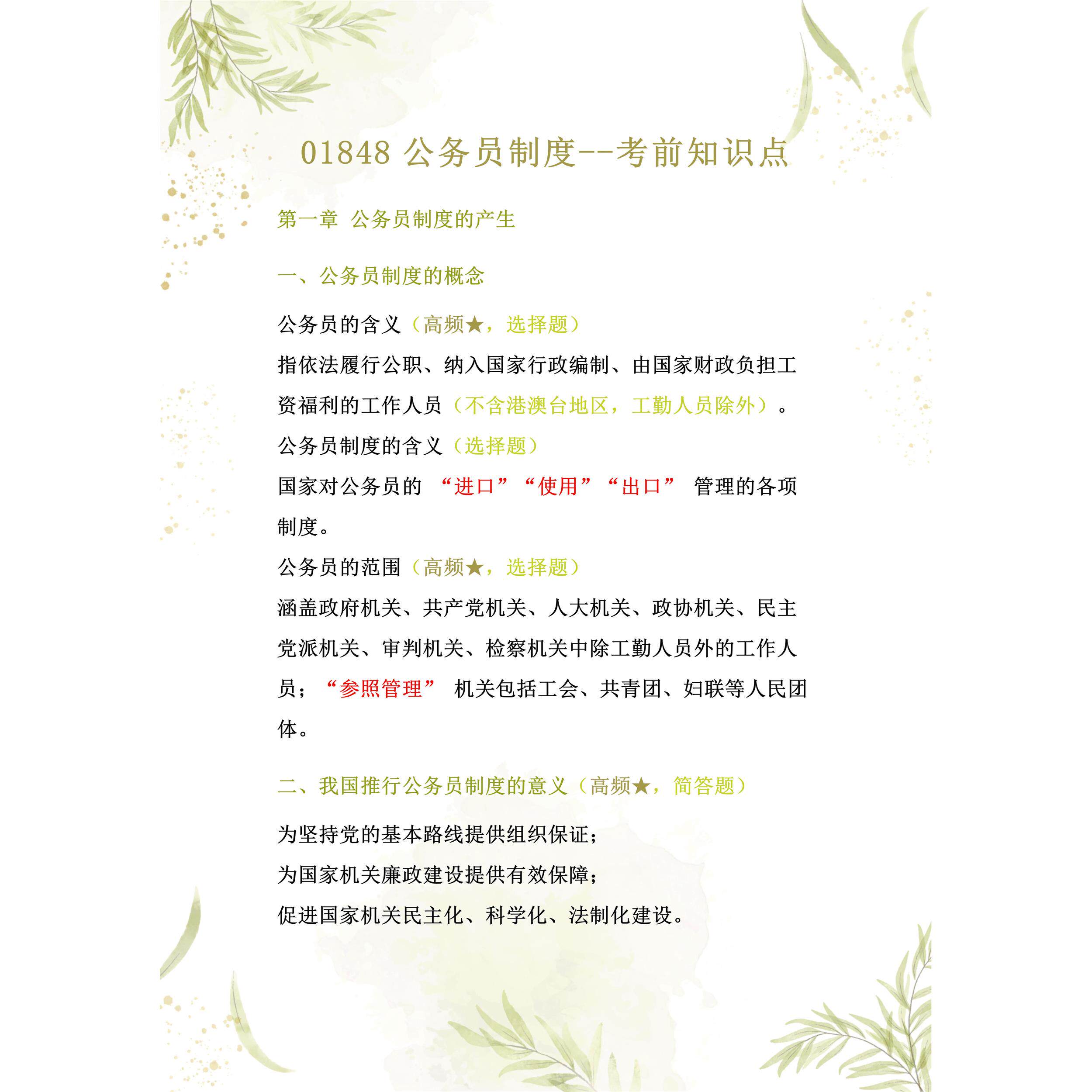 考点重点 01848公务员制度考纲讲解自考笔记 资料 自考复习过关思维导图 精讲视频网课 考前押题资料