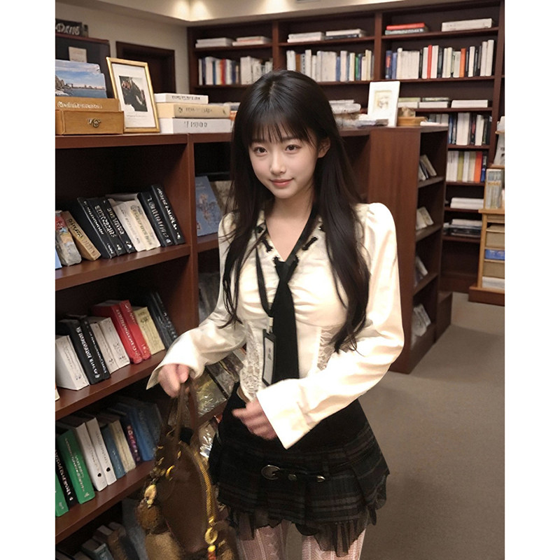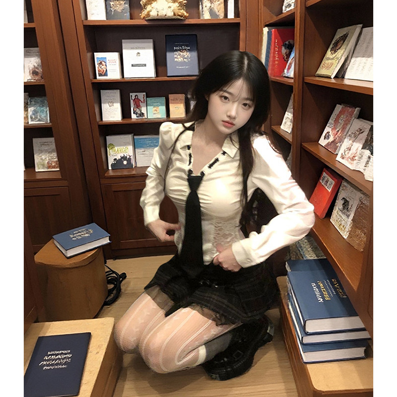 欲感拿捏法式蕾丝衬衫短裙两件套气质甜辣时髦收腰百搭显瘦套装女