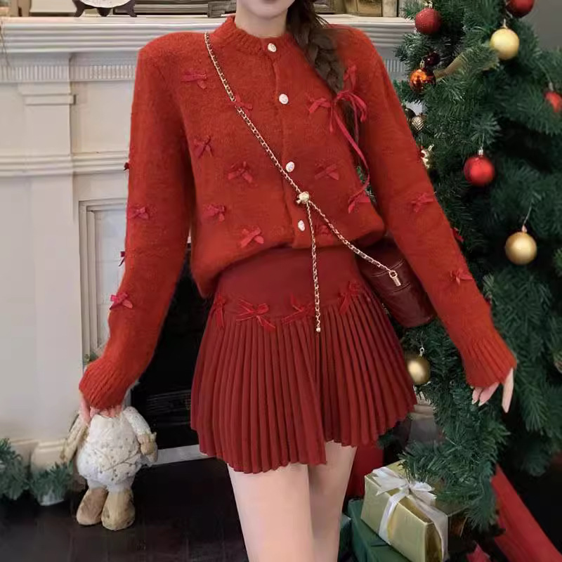法式小香风重工蝴蝶结针织衫秋冬短款宽松圆领洋气时尚软糯毛衣