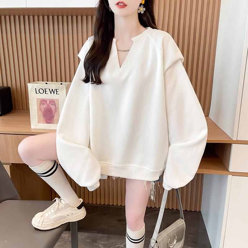 领垫肩卫衣女春秋款韩版新款宽松休闲百搭薄款短款长袖恤上衣女