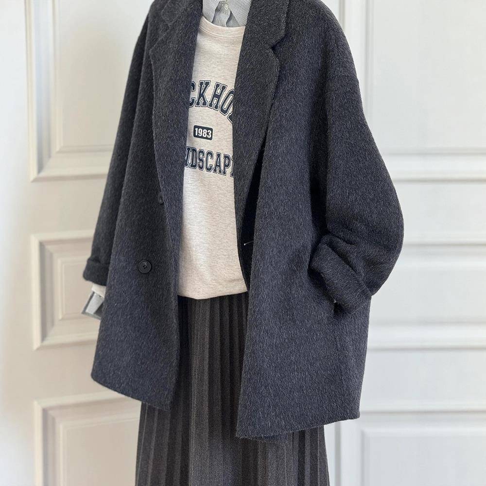 短款毛呢外套女小个子2025新款秋冬季高级感加厚西装羊毛呢子大衣