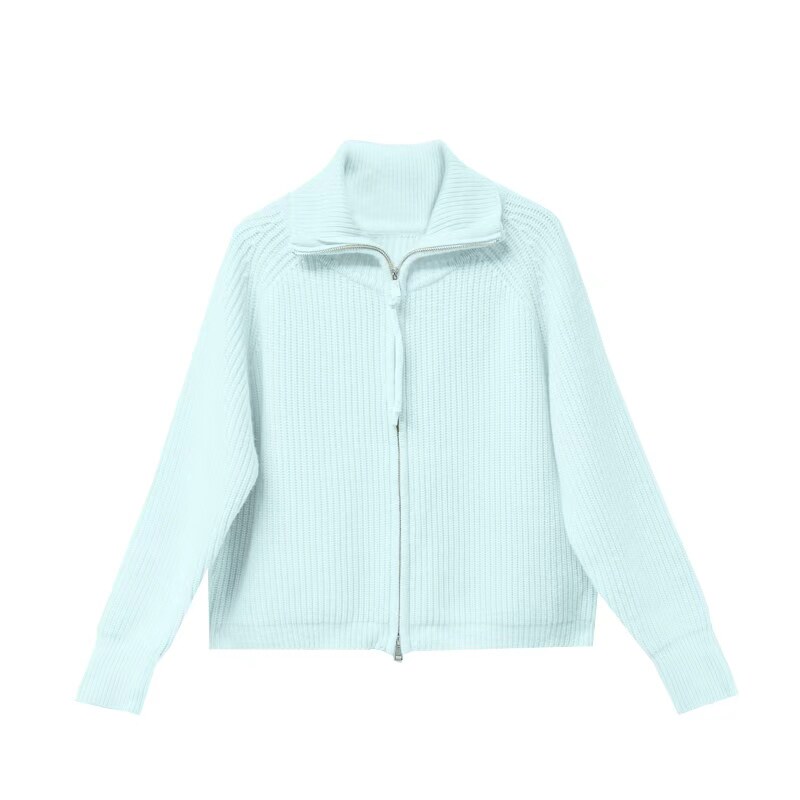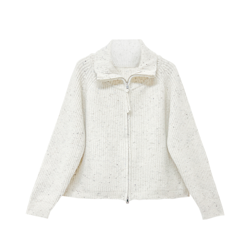 【橙庐】521218厚实双拉链翻领绵羊毛外套 女春秋时尚点子纱开衫