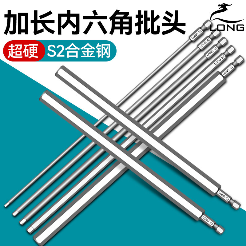 300mm加长内六角批头特长内六方电动螺丝刀强磁加硬风批六角套装