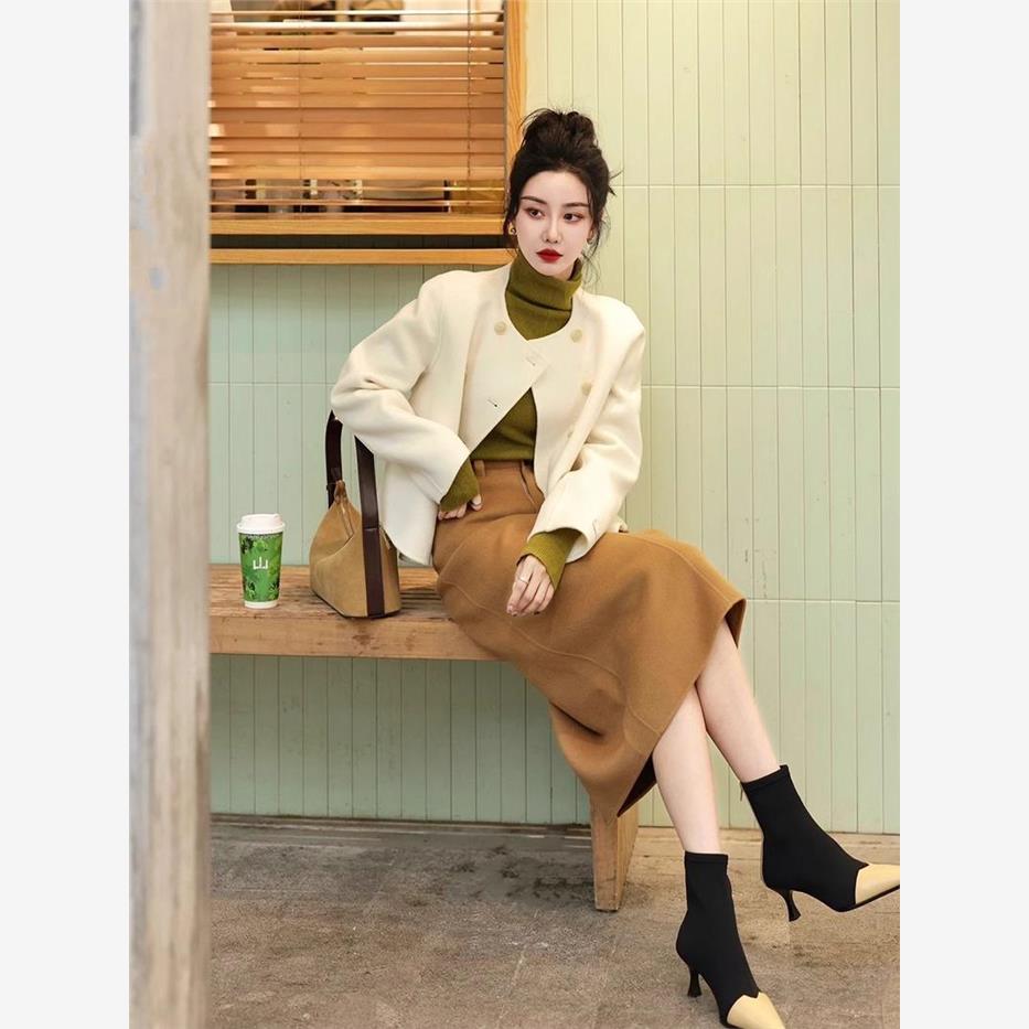 韩剧女主穿搭三件套装秋冬新款小香风气质时尚高级感盐系西装外套