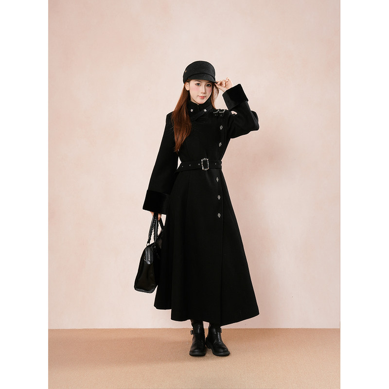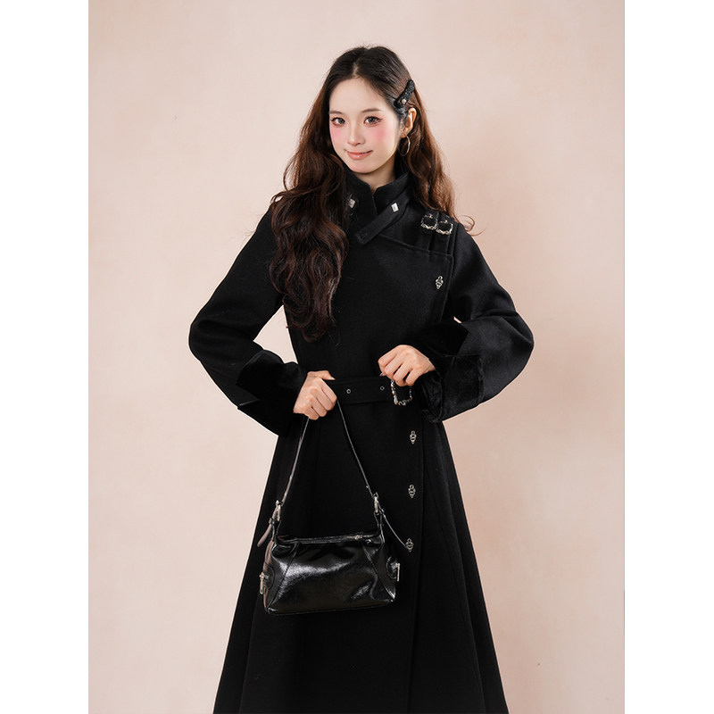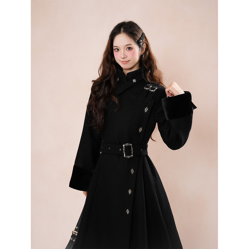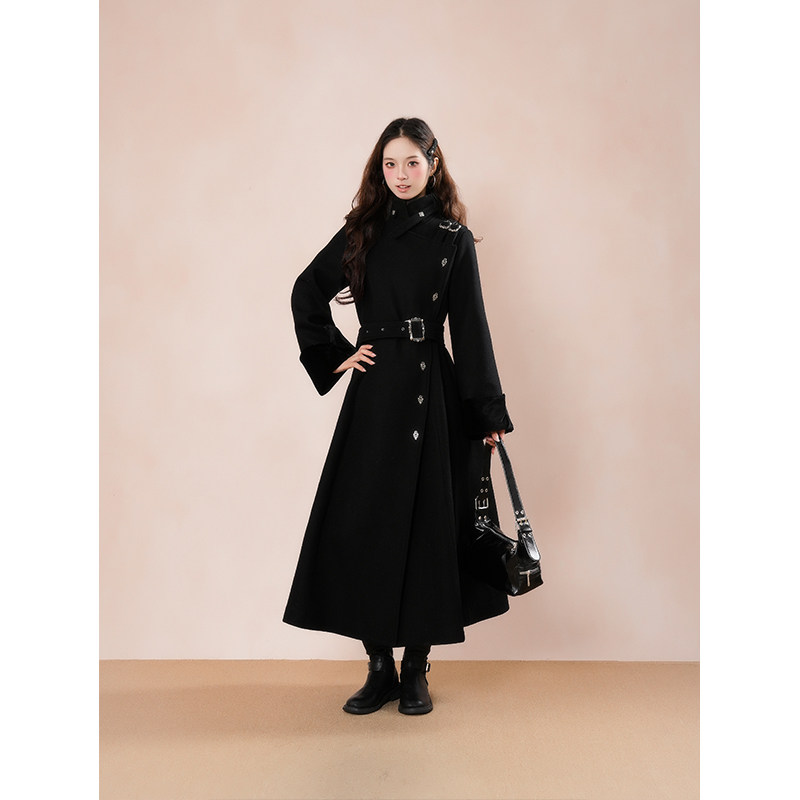 【破势出击】2025年冬季新款哥特气质绑带收腰显瘦中长款毛呢外套