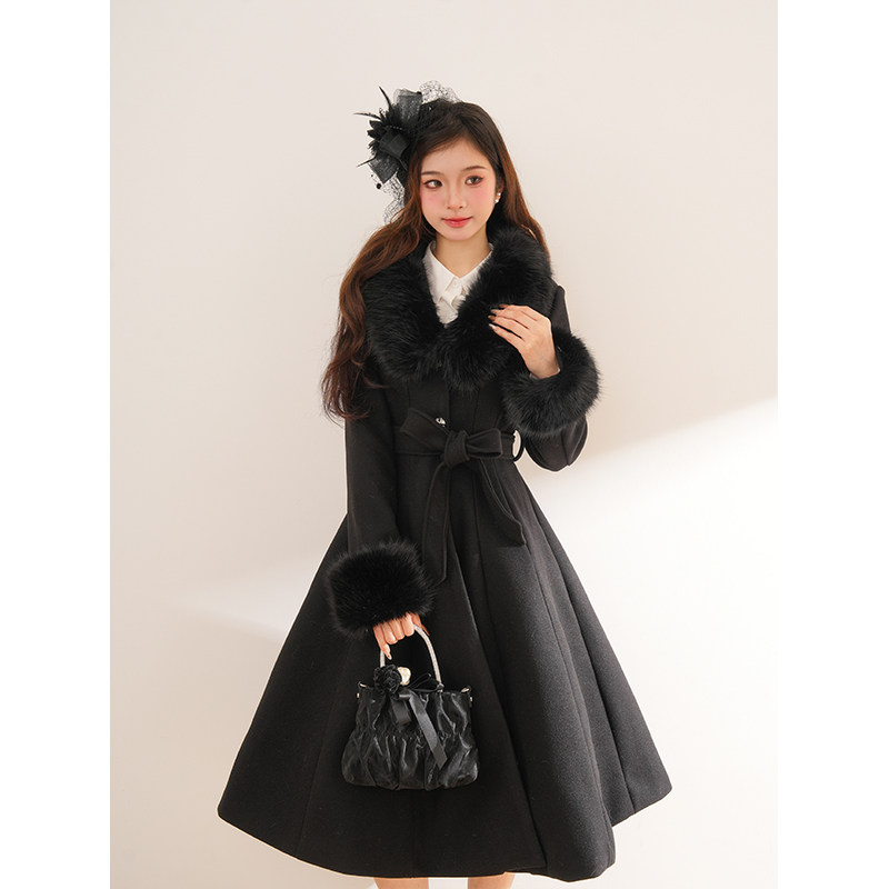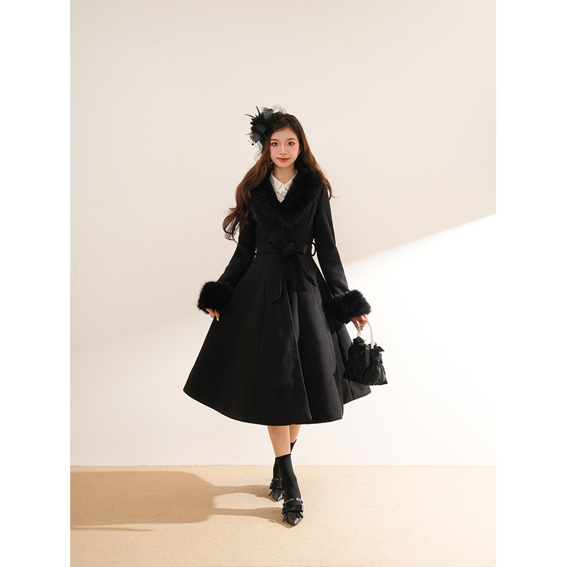 魔女的祷告 冬季新款哥特暗黑系lolita重工收腰中长款毛呢大衣女