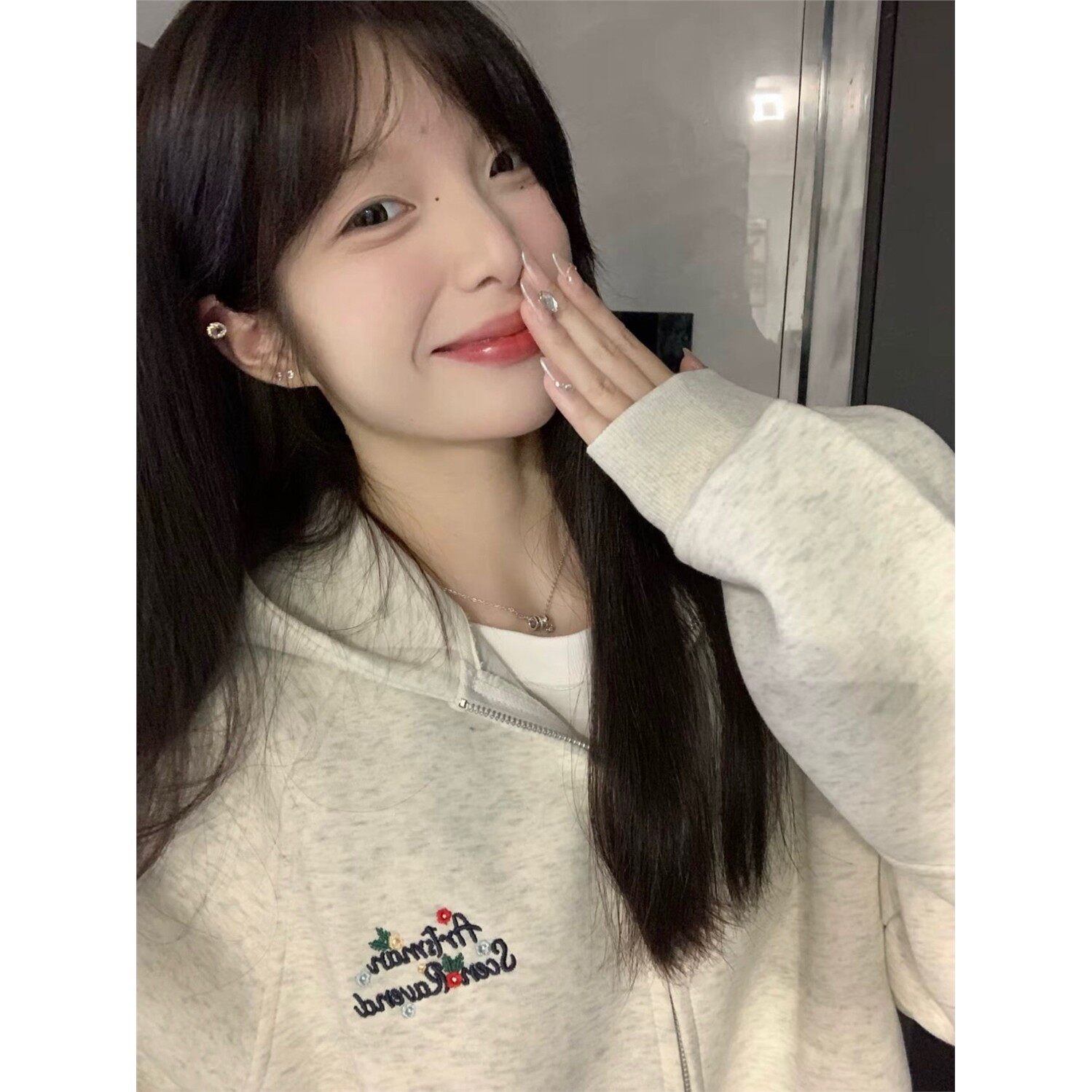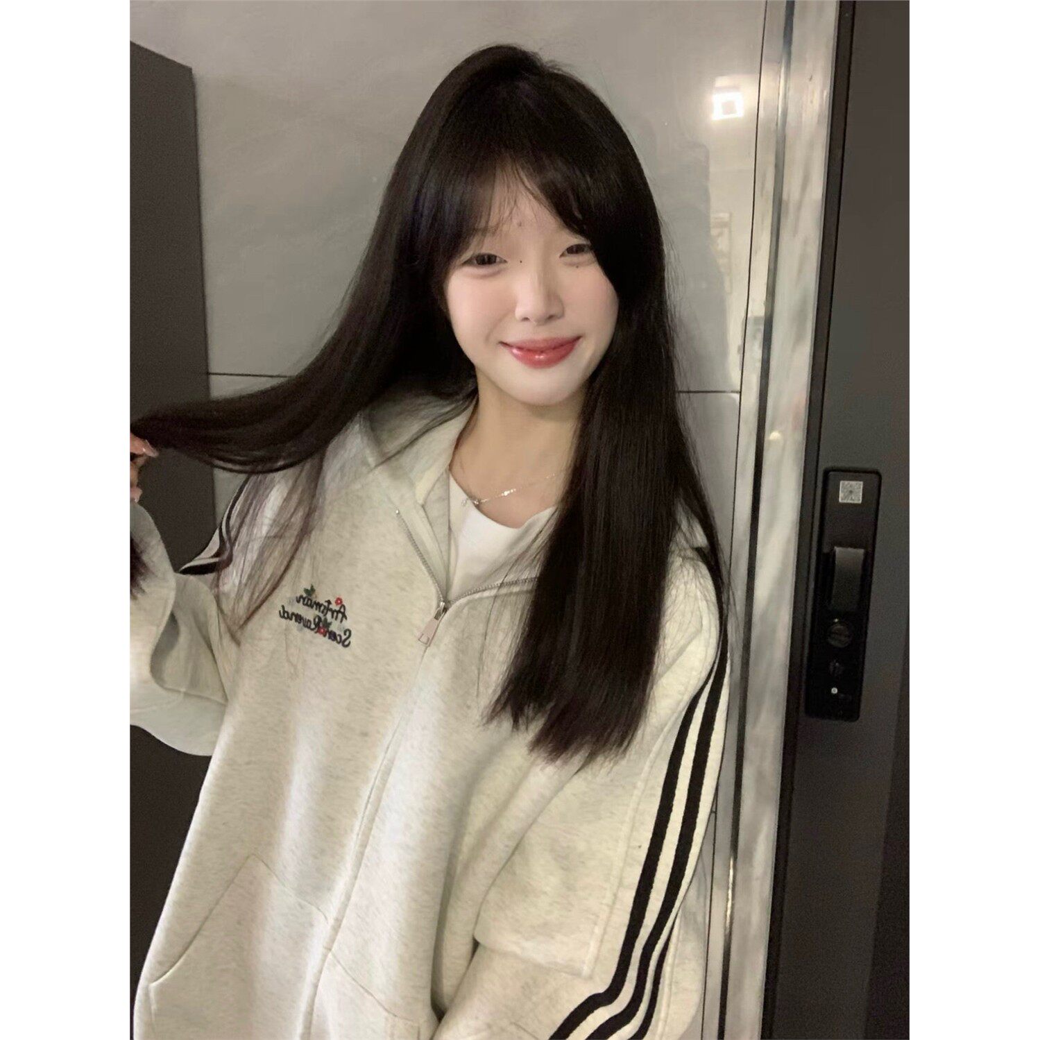美式覆古三条杠插肩刺绣字母卫衣女春秋季宽松学院风开衫连帽外套