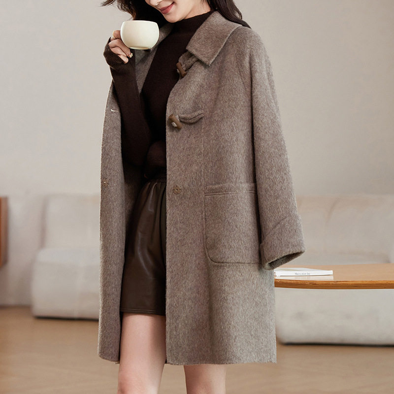 双面羊绒大衣女中长款秋冬2025新款韩版宽松高级感牛角扣毛呢外套