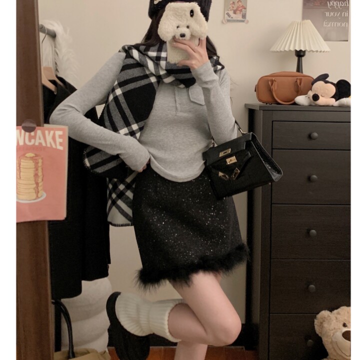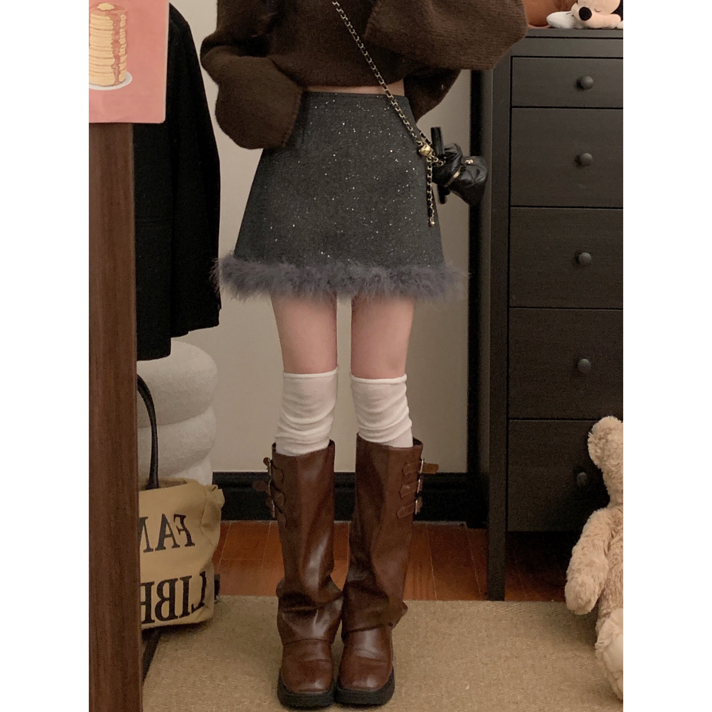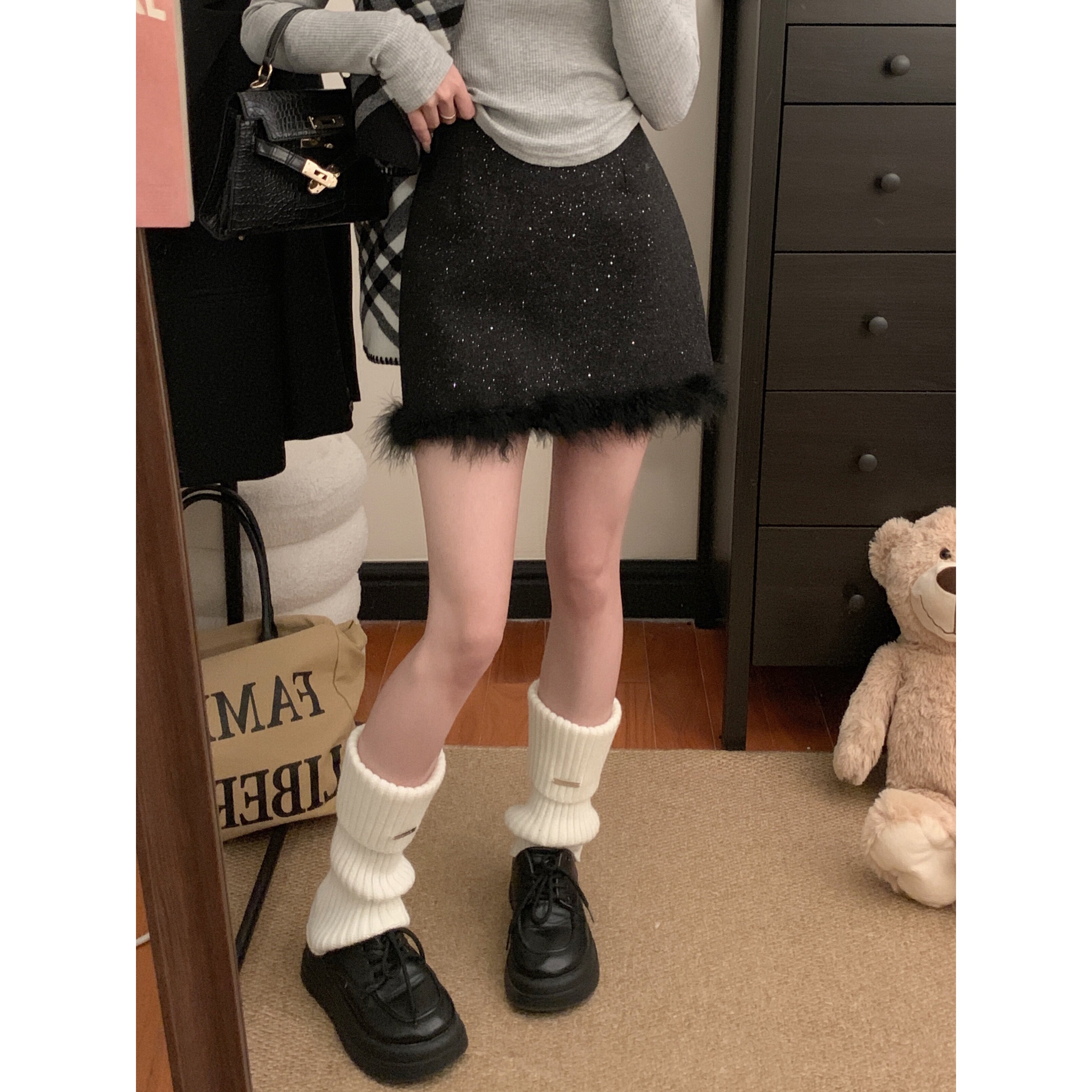 实拍秋冬新款小香风细闪半身裙百搭高腰显瘦包臀A字裙精致小短裙