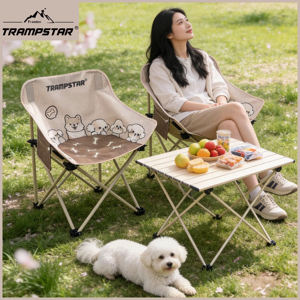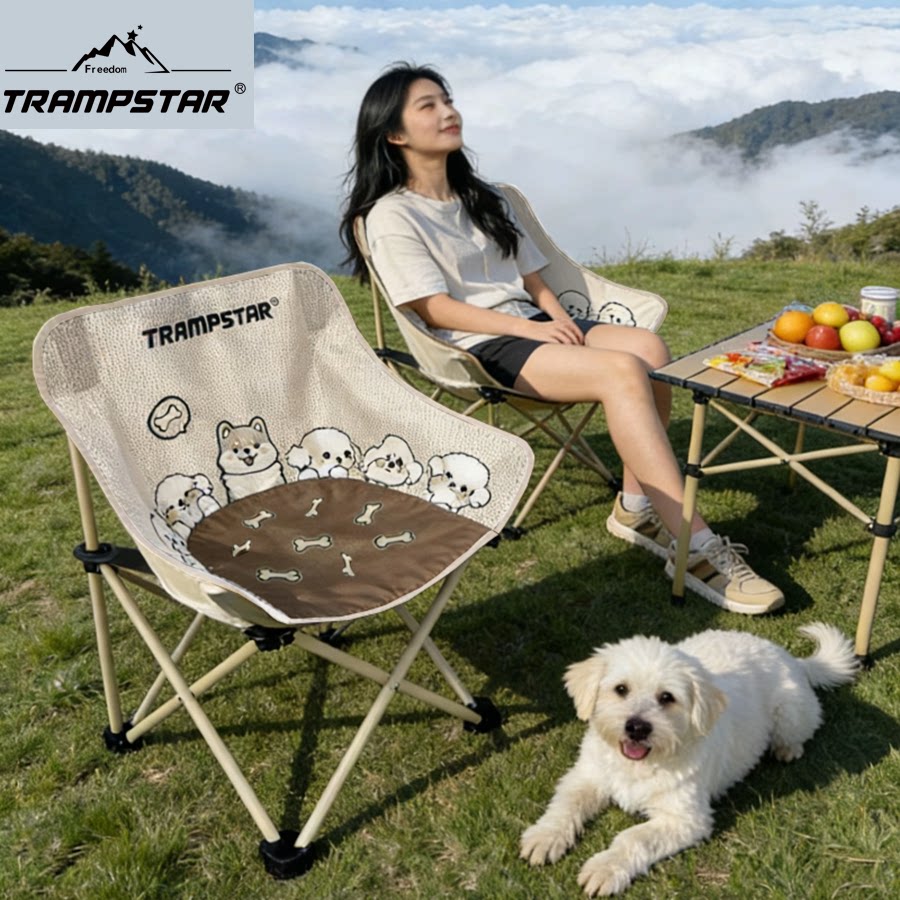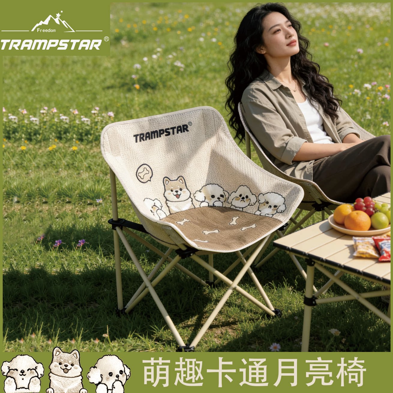 TRAMPSTAR【仿刺绣小狗】升级版月亮椅户外折叠椅露营便携沙发椅