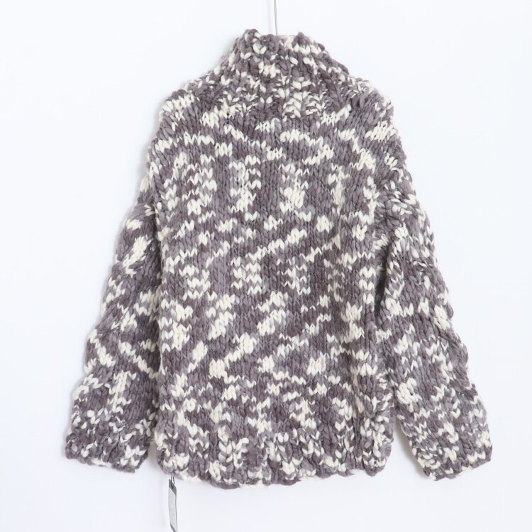 首页> 女装> D060100客供料秋冬高领套头宽松休闲含羊毛女重磅粗毛线保暖毛衣