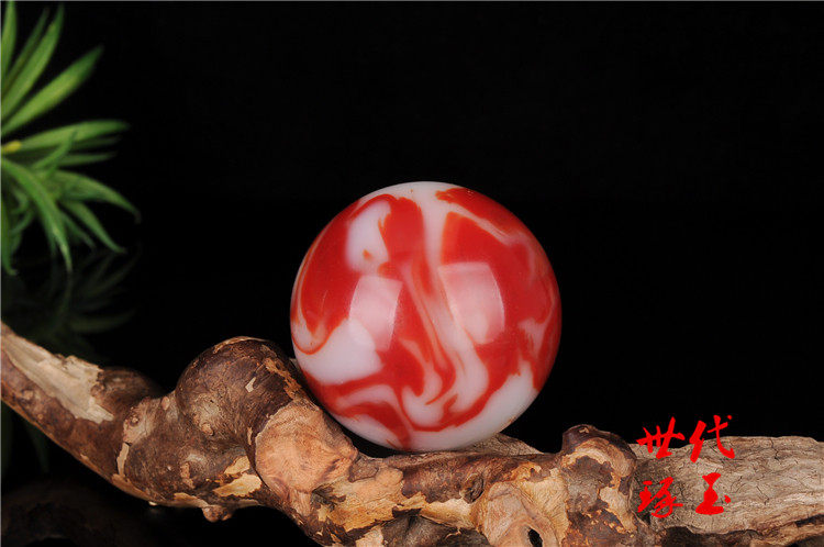新疆戈壁鸡血玉金丝玉手球把件和田玉健身球把件把玩玉石手球把件