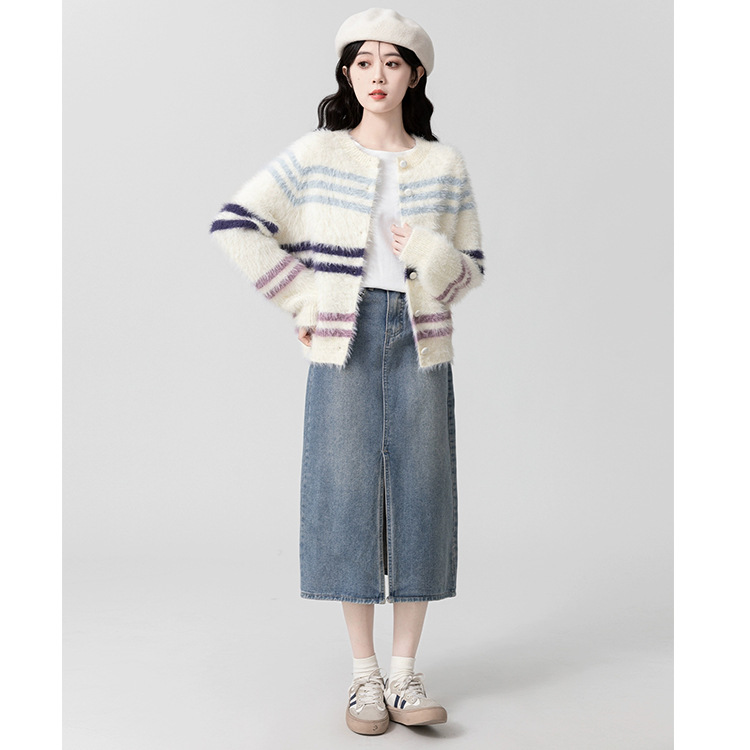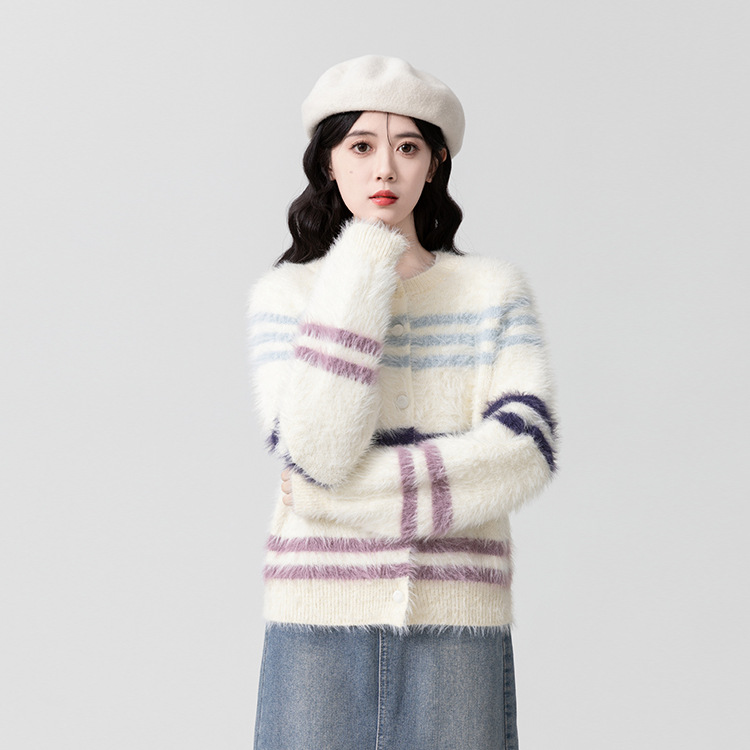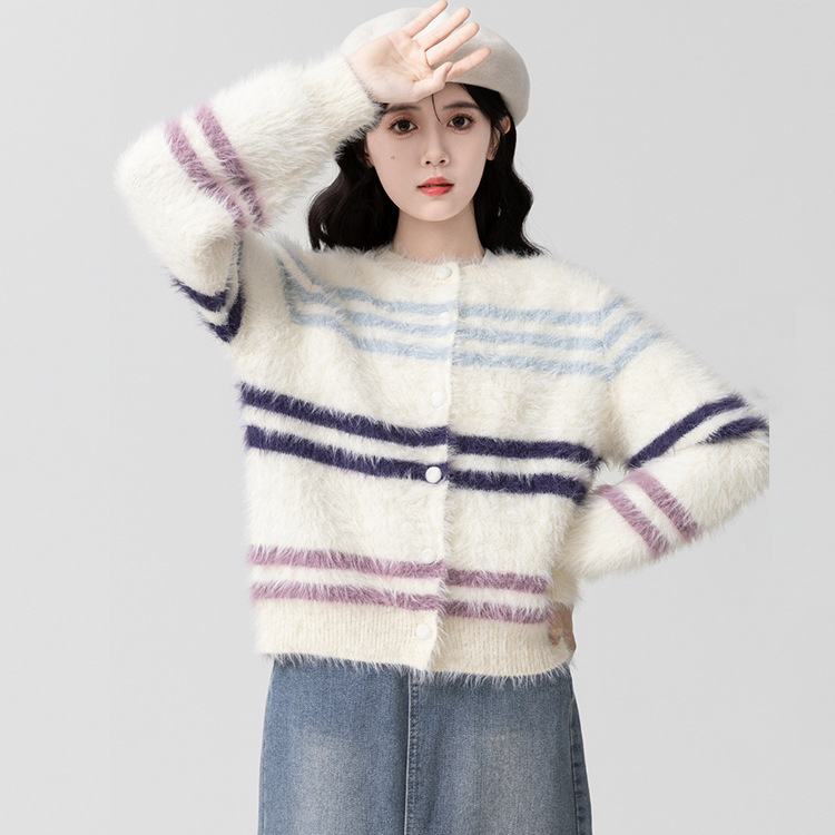 新款条纹毛衣针织衫开衫外套秋冬宽松上衣时尚外套
