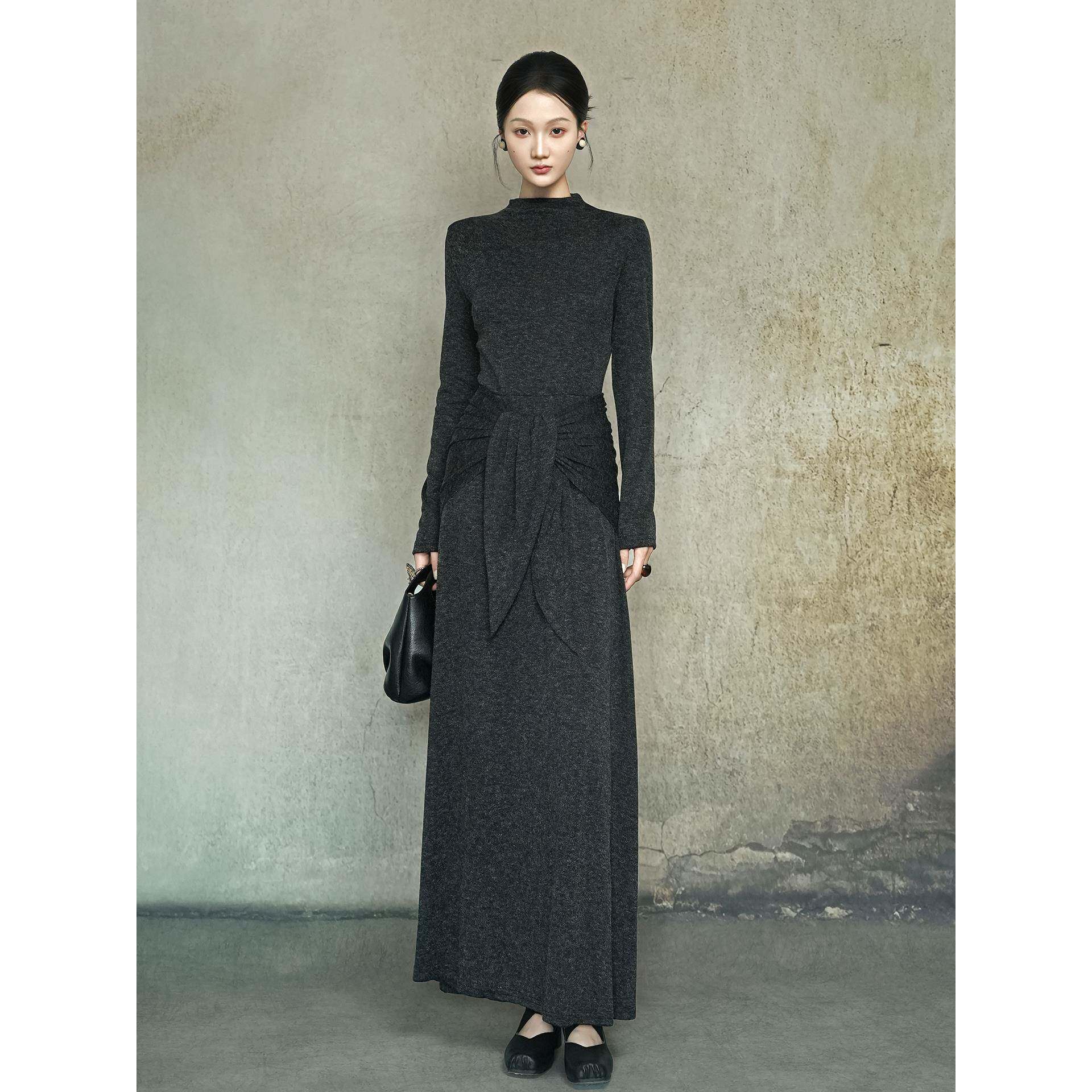 秋冬款针织连衣裙长裙气质修身显瘦高级感风衣内搭半高领打底裙子