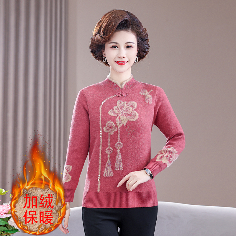 妈妈冬季加绒毛衣中老年水貂绒打底衫女士加厚一体绒冬装上衣