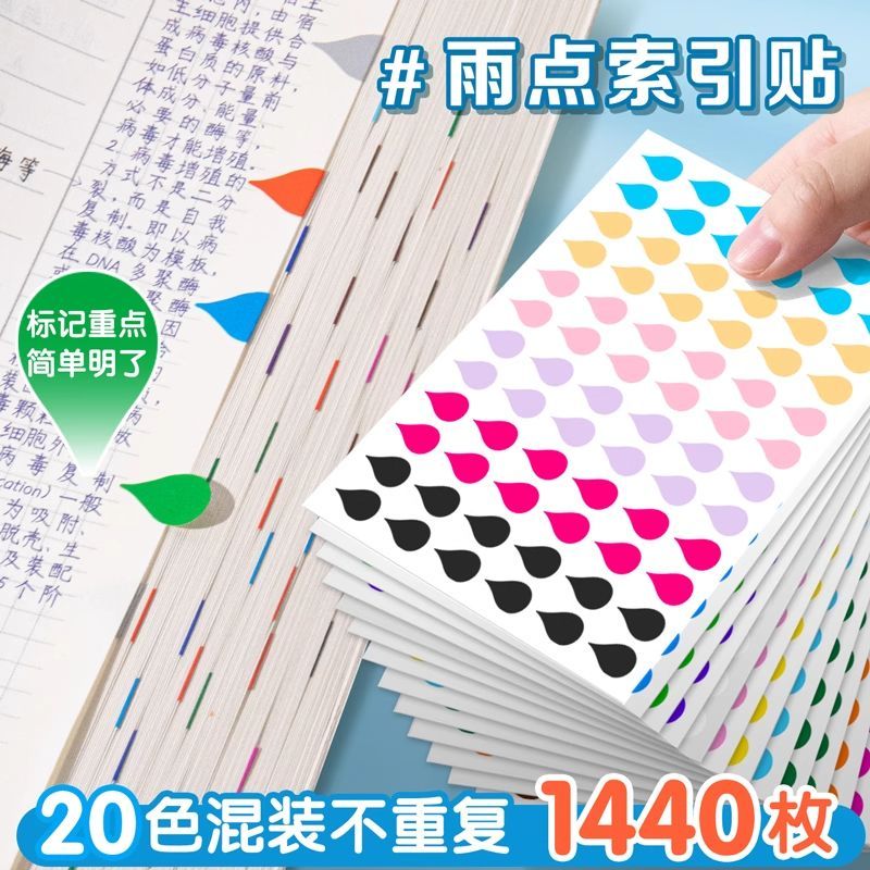 可移胶读书批注贴彩色雨点阅读贴水滴贴索引贴水滴形标注圆点贴