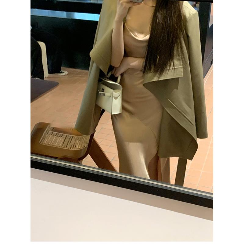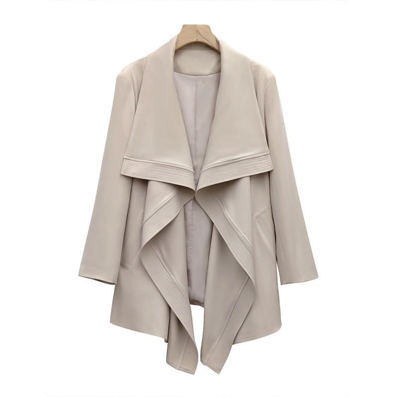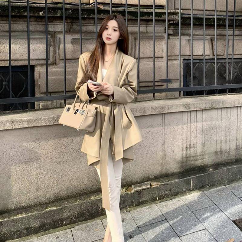 卡其色复古大翻领系带短款风衣外套女2025春季收腰垂感大衣小个子