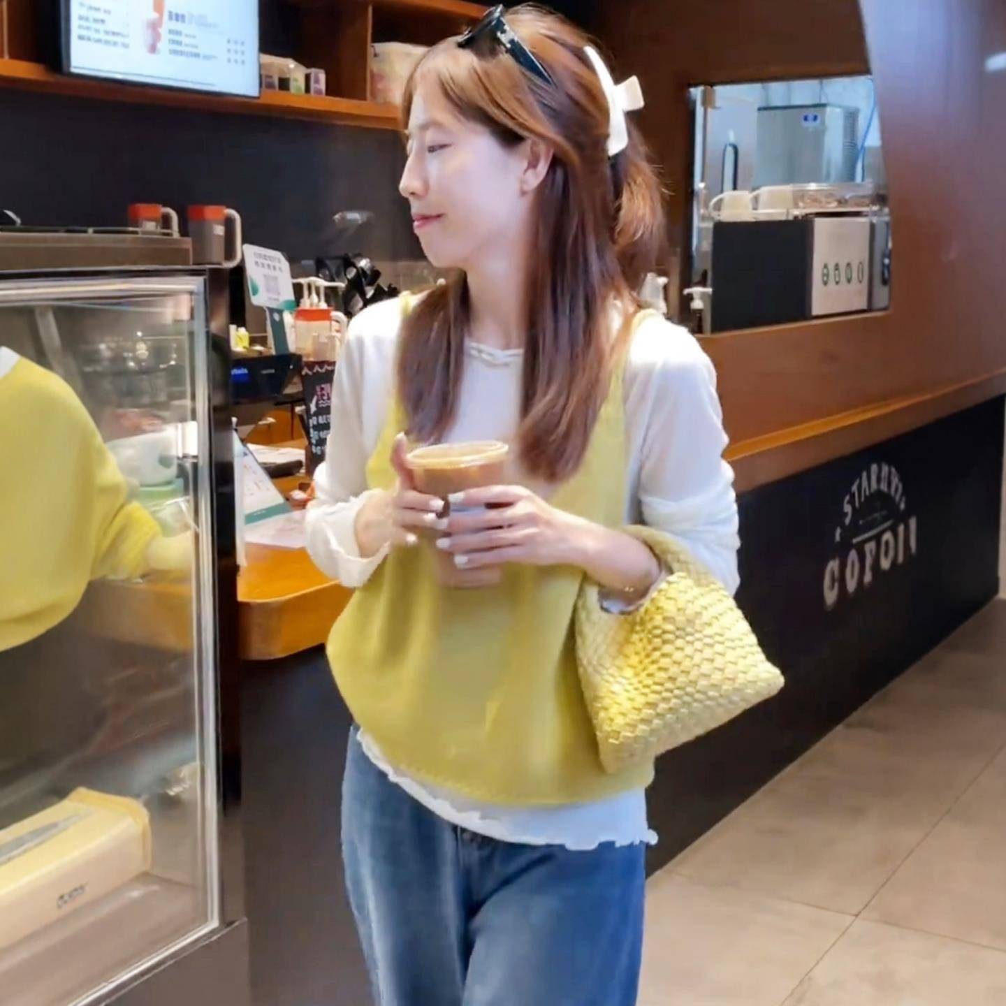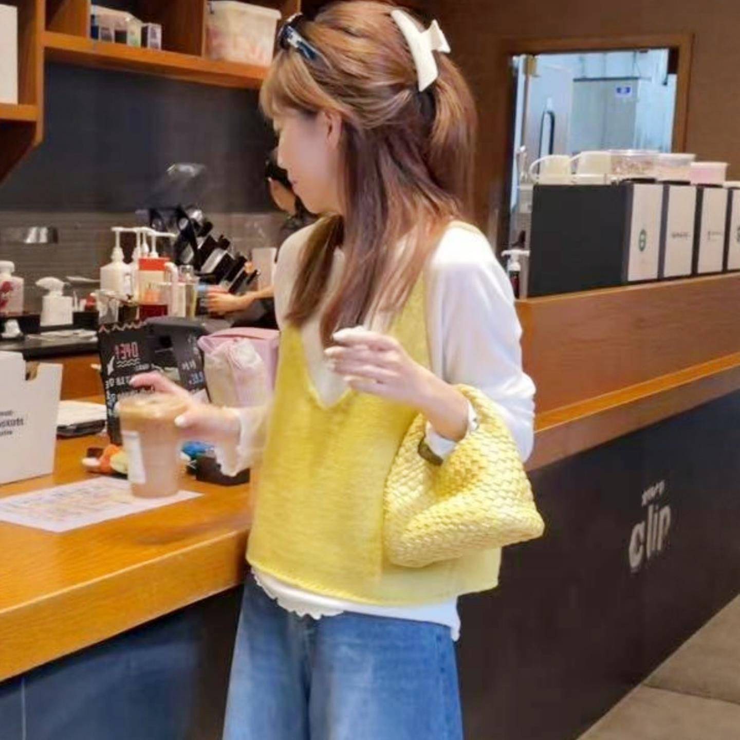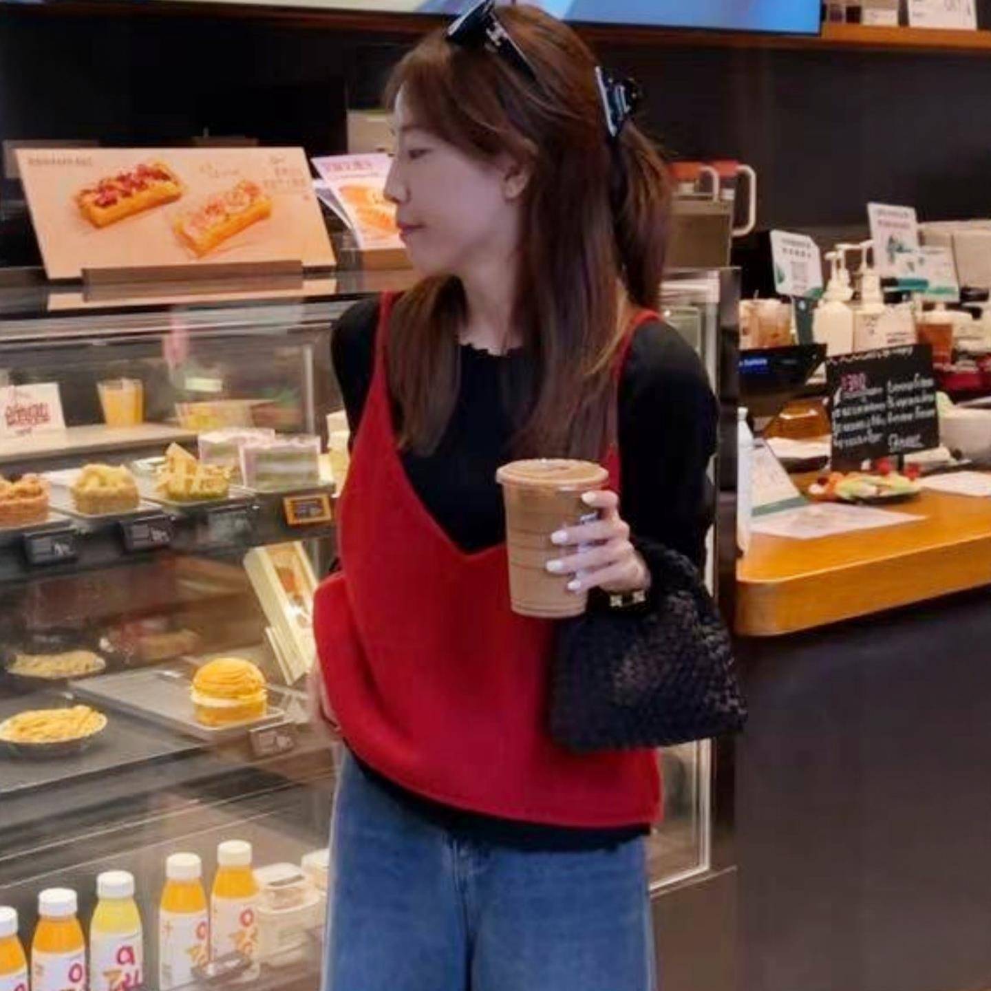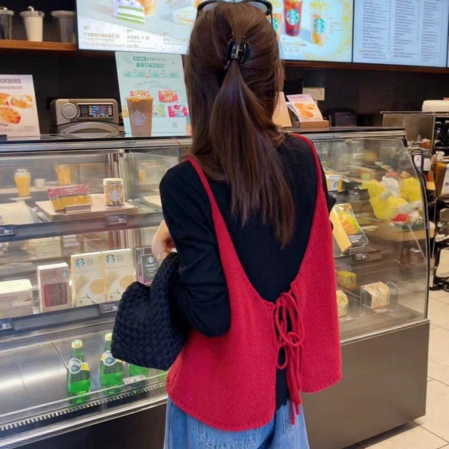 设计感后背绑带针织马甲长袖t恤两件套女2025新款早秋季宽松上衣
