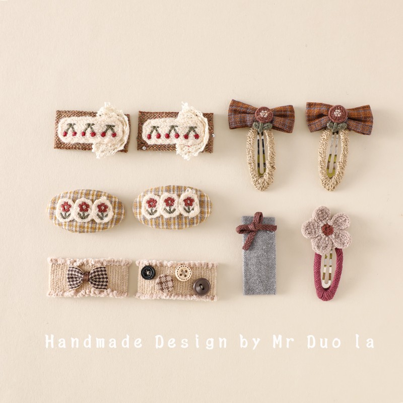 念念女童甜美蕾丝刺绣小花bb夹宝宝布艺蝴蝶结高质感发夹发卡头饰