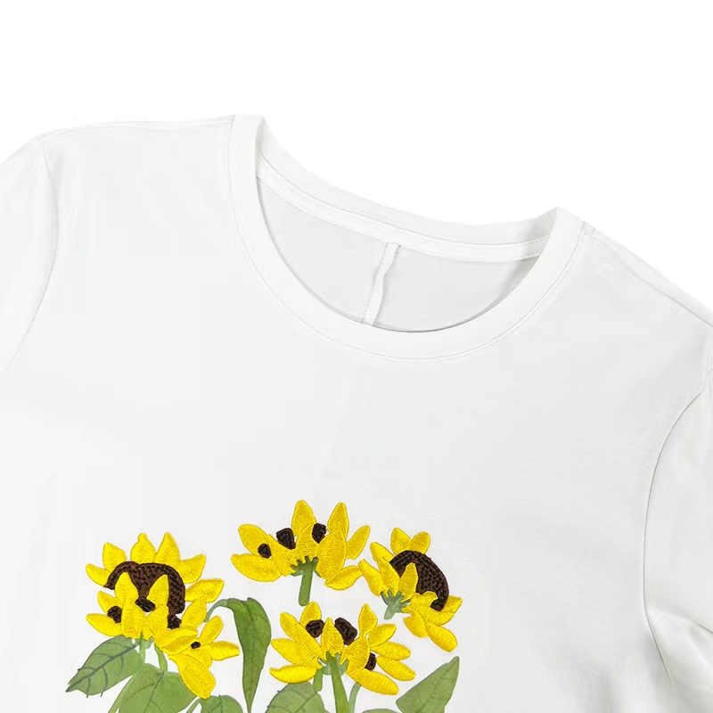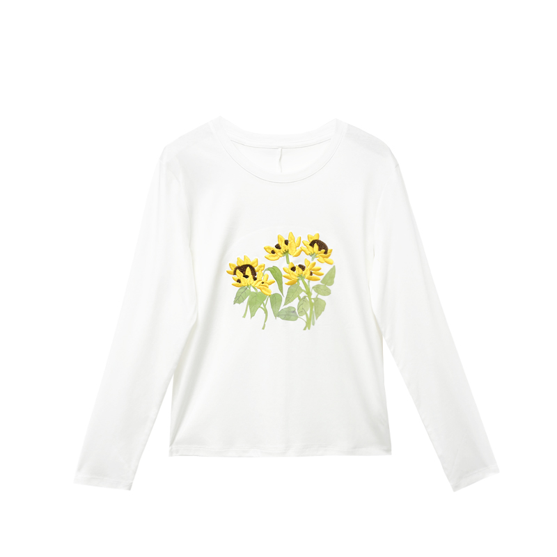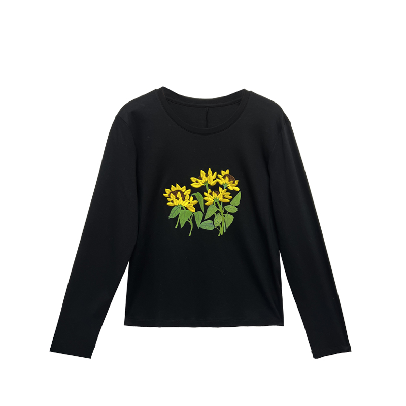 【橙庐】161004原创向日葵印花液氨丝光棉长袖T恤 春秋女时尚休闲