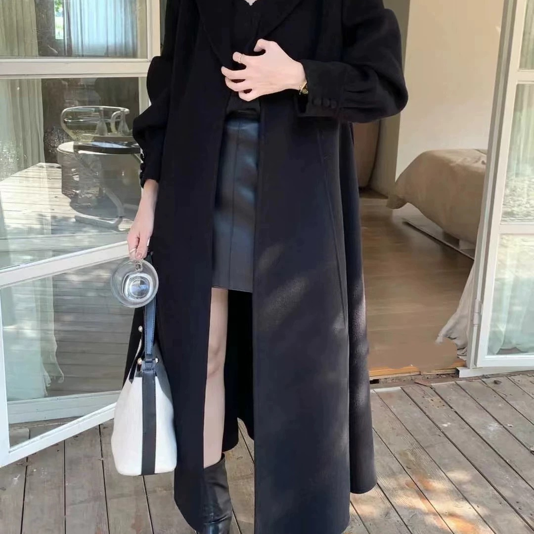 2025秋冬新款双面呢泛领拼色女士长款宽松羊毛大衣902