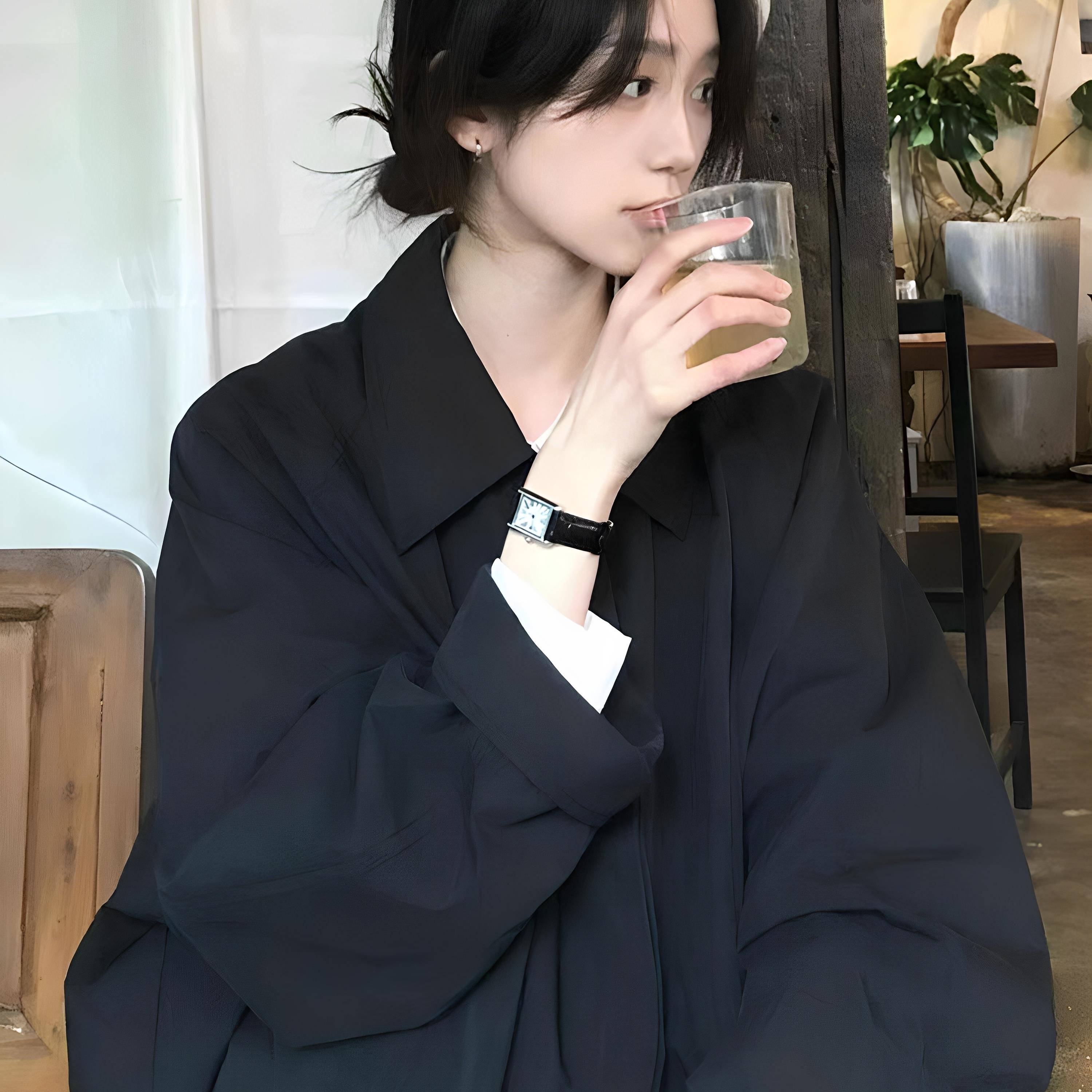 日系黑色风衣外套女2025秋季新款小个子巨好看韩系休闲大衣中长款