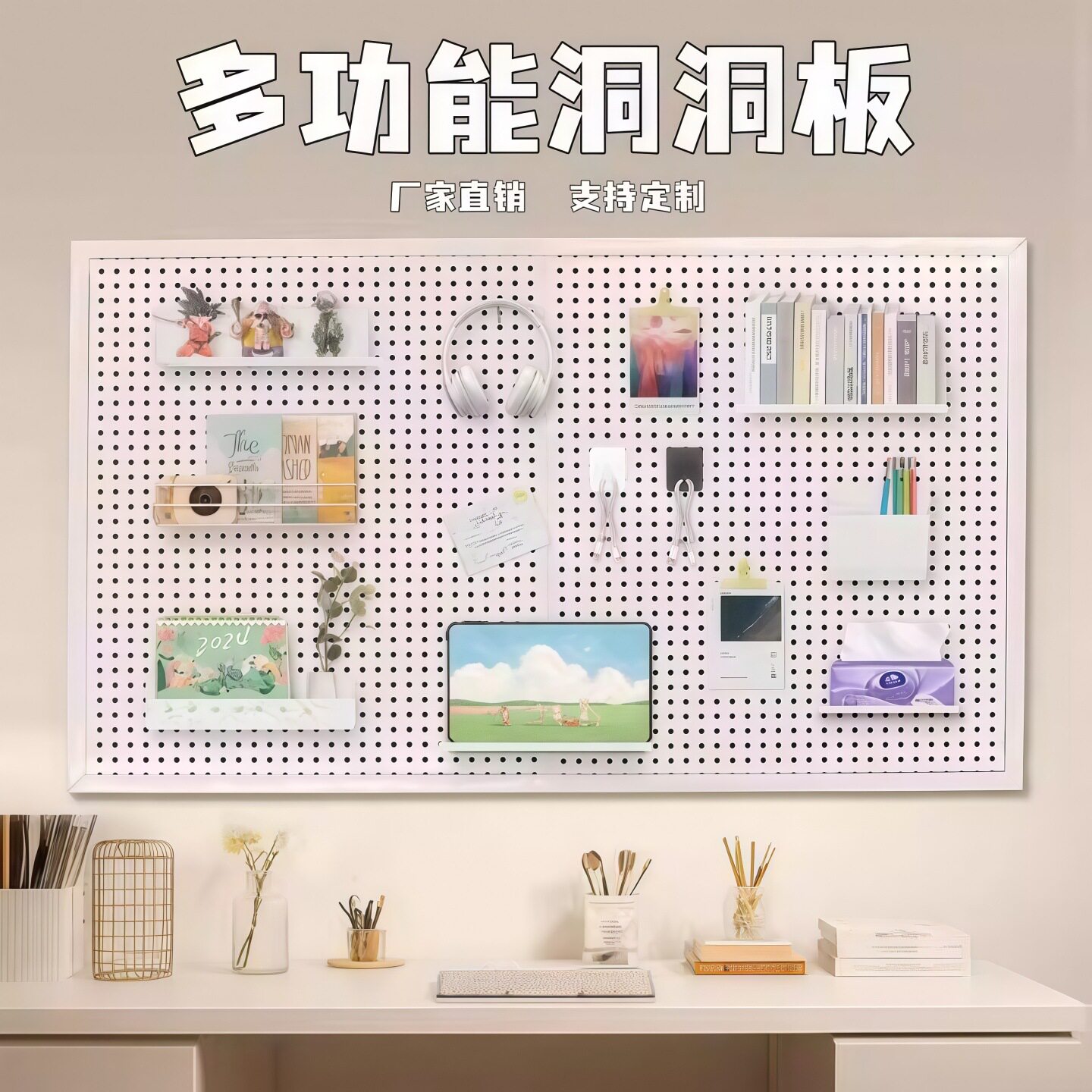 书桌洞洞板置物架墙上收纳学习家用宿舍墙面造型金属冲孔板展示架