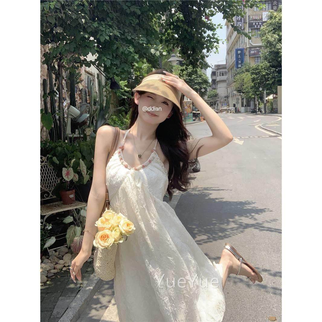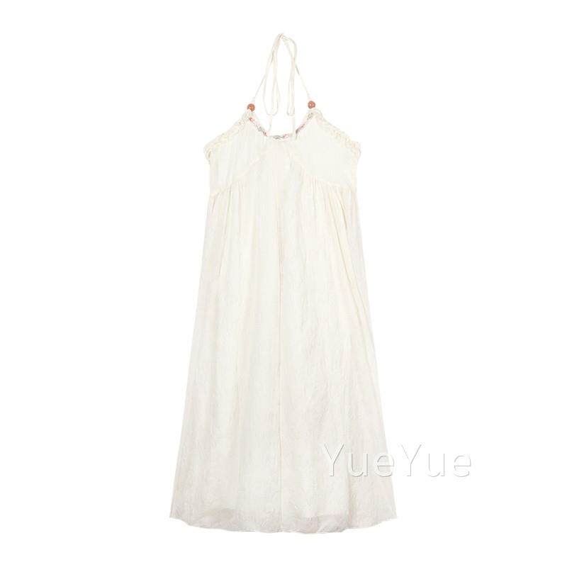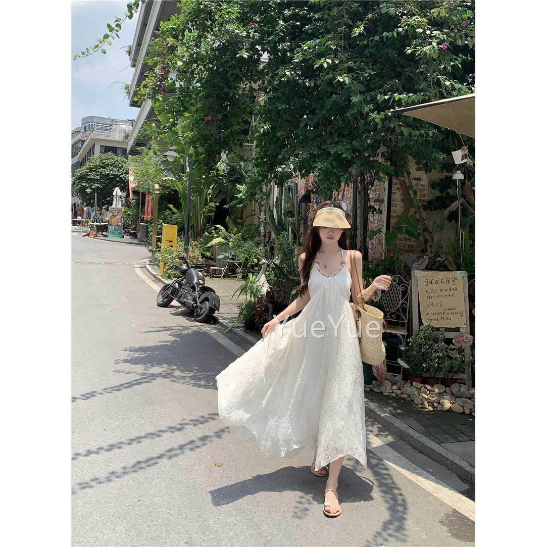 纯欲挂脖衣雪纺连裙女季海边度1853假法式露背裙子高级感白风夏色