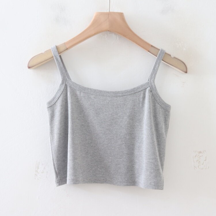 首页> 女装> C06031日单夏新款客供料套头有弹性修身女纯色简洁短款吊带背心