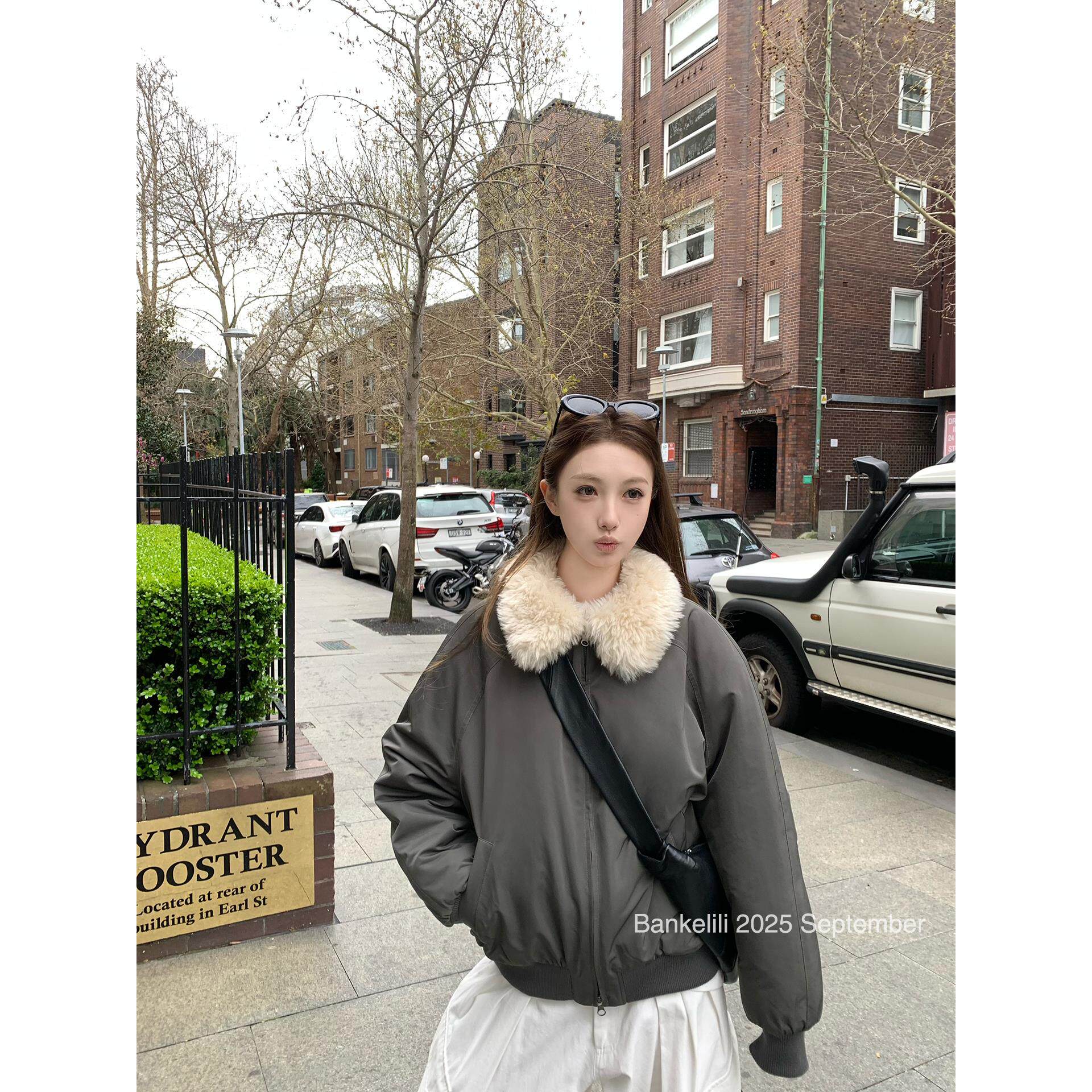 板栗可可Bankelili'纽约雨季'毛毛翻领宽松韩系棉服夹克外套女冬