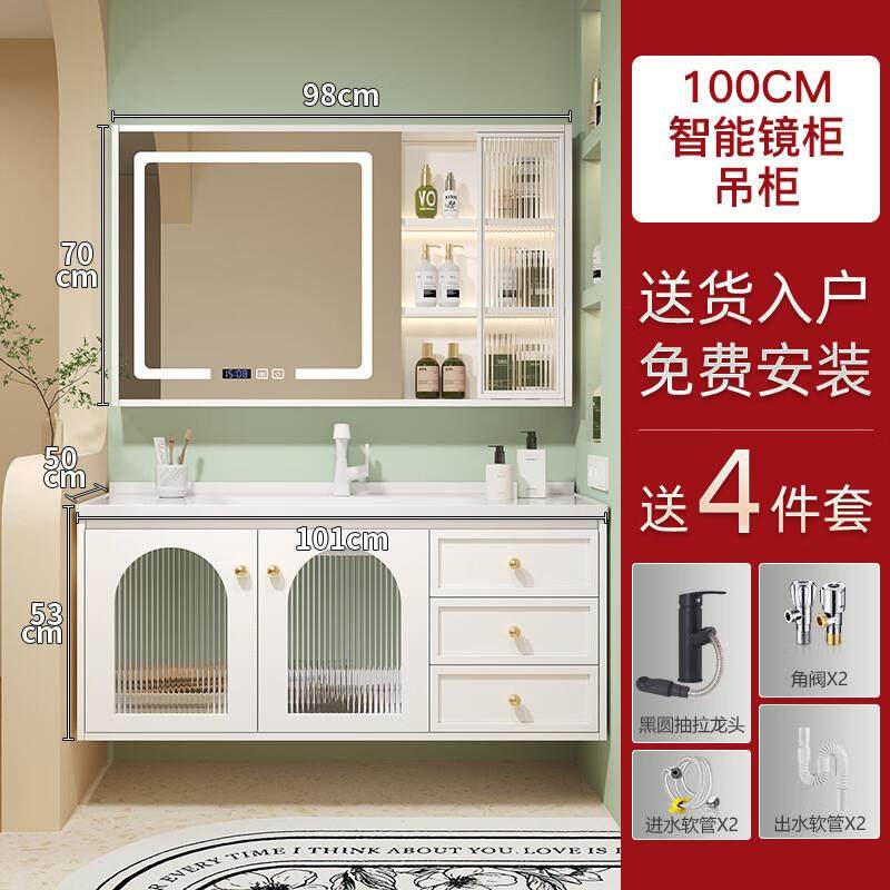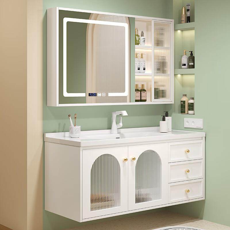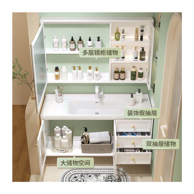 启鸣(QIMING)法式浴室柜陶瓷一体盆卫生间洗脸洗手盆柜组合卫浴智