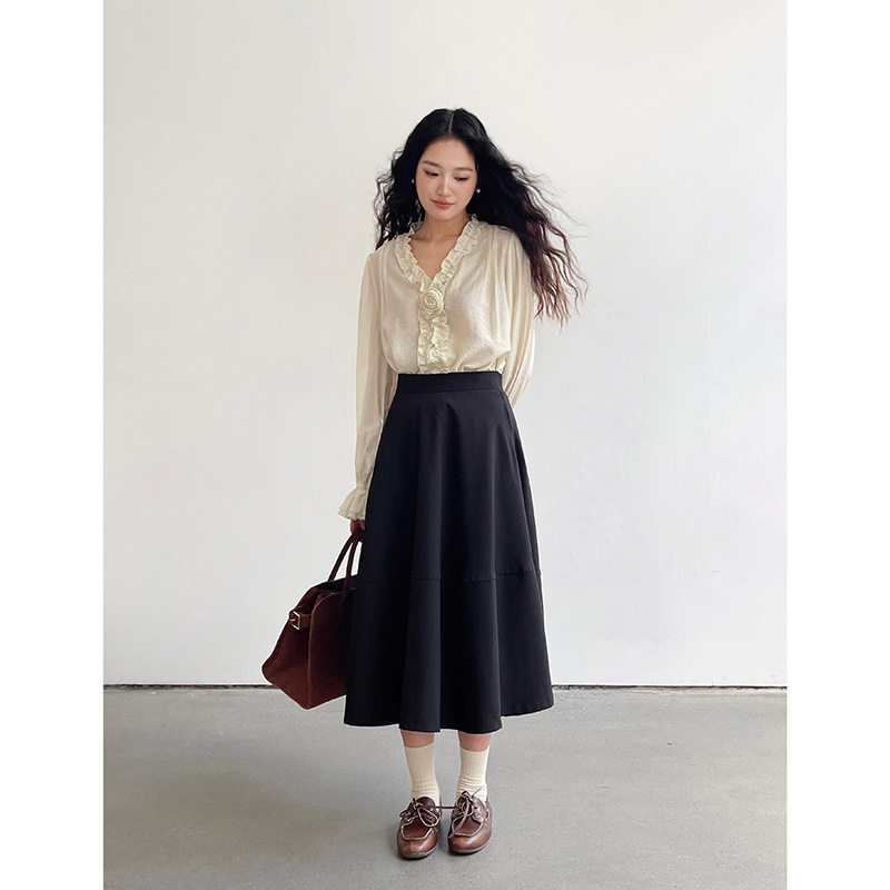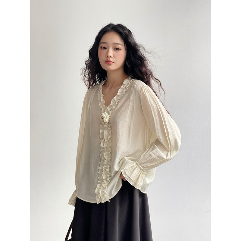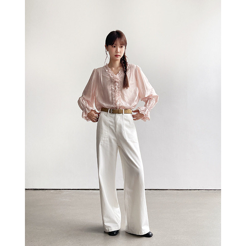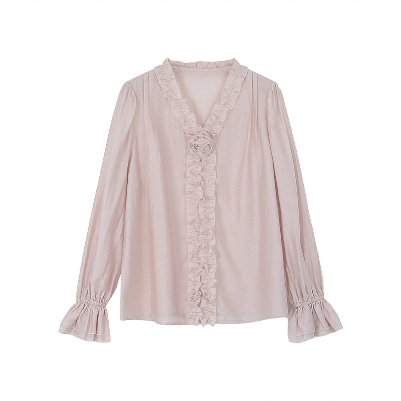 Tania S家25春季新款纯色衬衫喇叭袖通勤衬衣长袖百搭上衣女