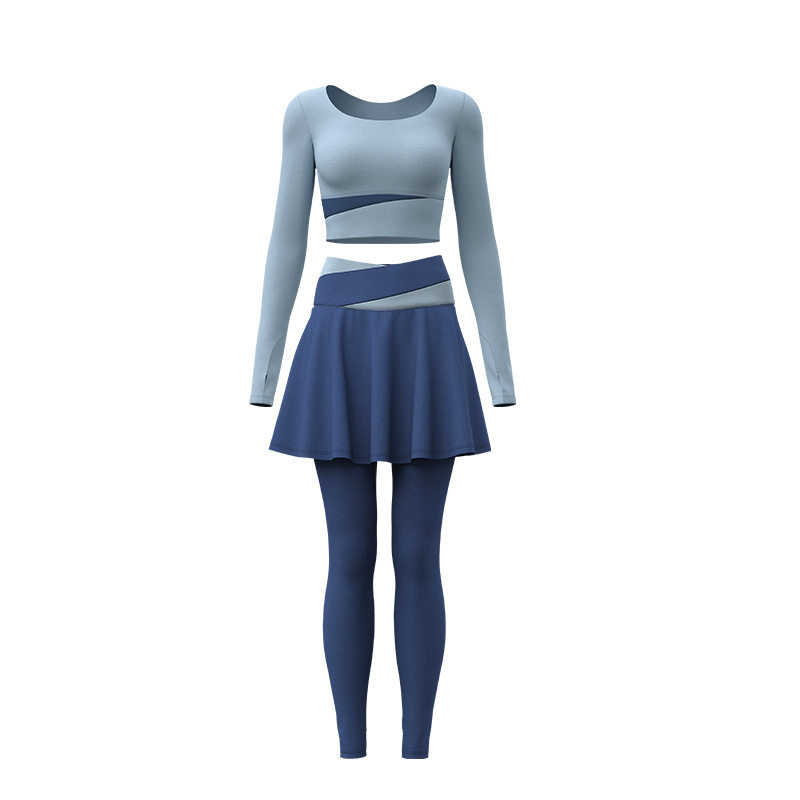 聚衣堂修身瑜伽套装健身衣裸感显瘦室内防走光跑步健身服女