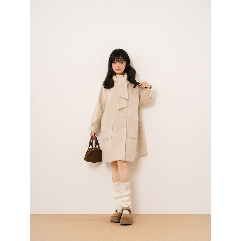 月亮便士 甜美减龄堆堆领大衣2025冬季高级感气质中长款毛呢外套