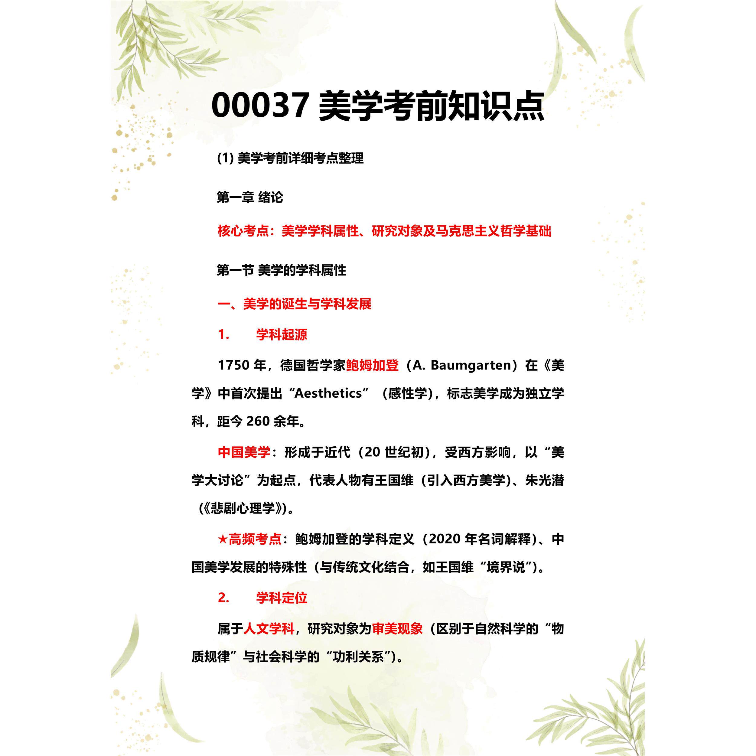 考点重点 00037美学 考纲讲解自考笔记 资料 自考复习过关思维导图 精讲视频网课 考前押题资料