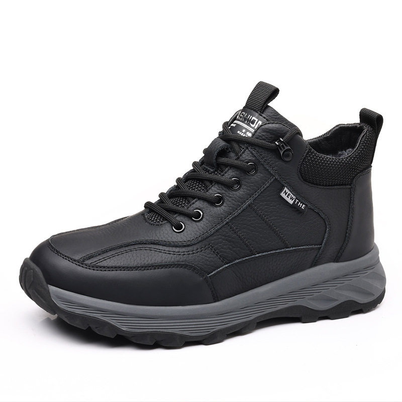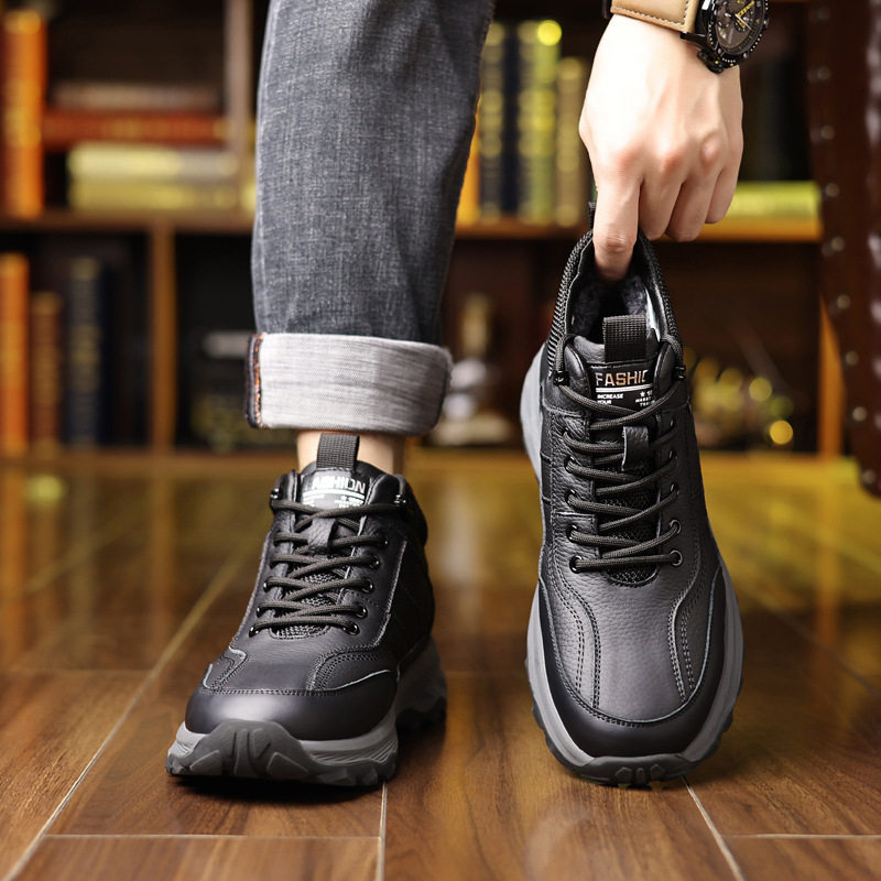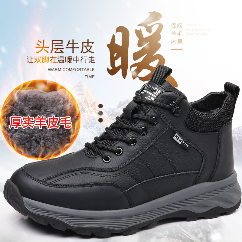 冬款奥古斯都头层牛皮冬新款男士棉鞋真皮加绒运动鞋羊毛休闲男鞋