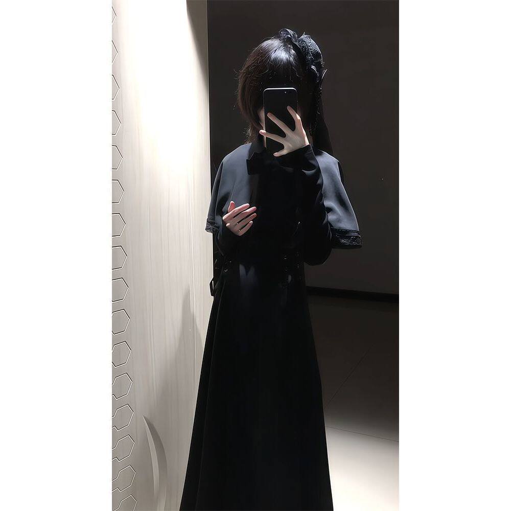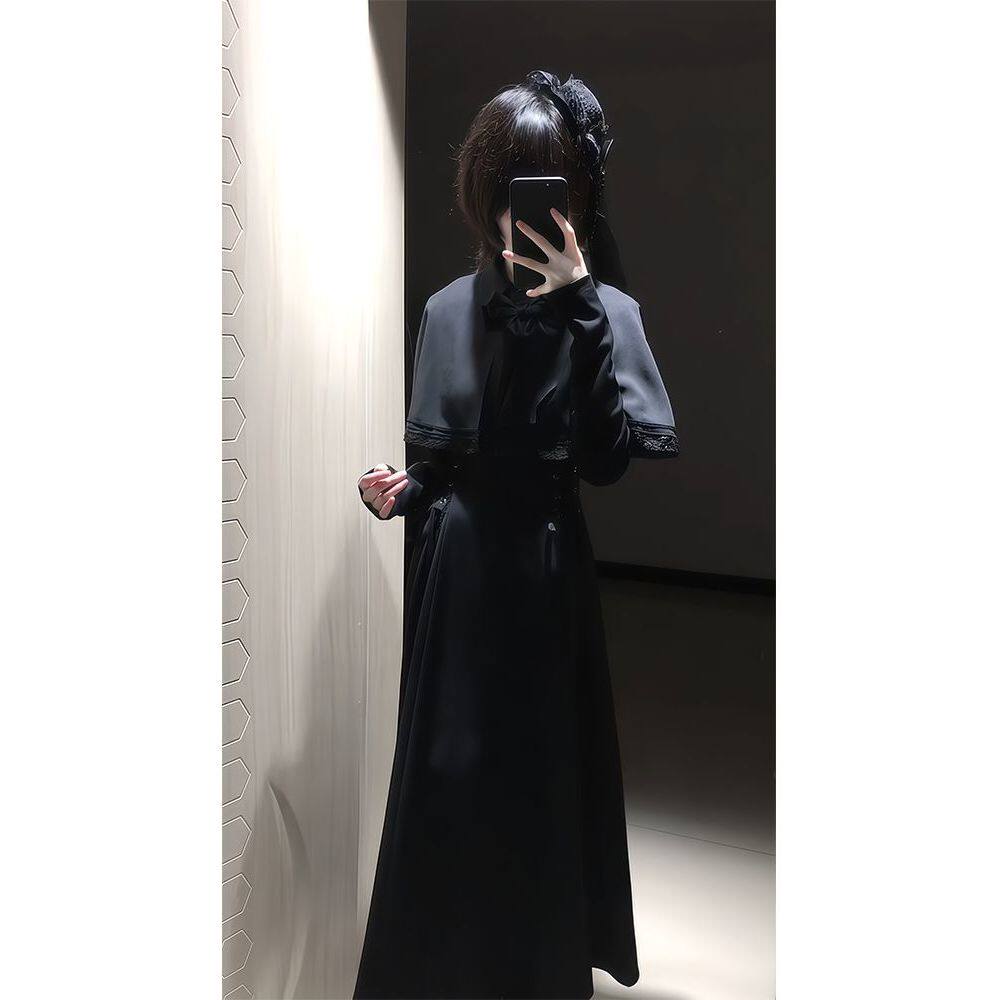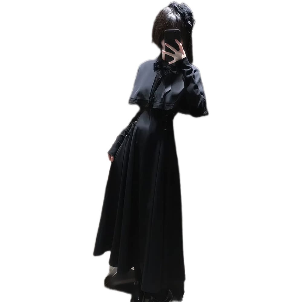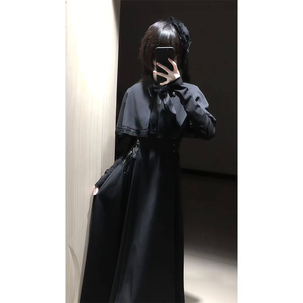【第十三夜】哥特优雅收腰显瘦连衣裙女2025新款高级感斗篷连衣裙
