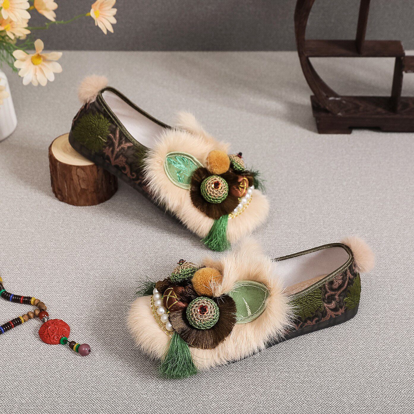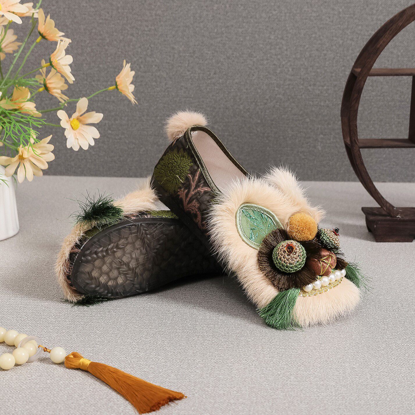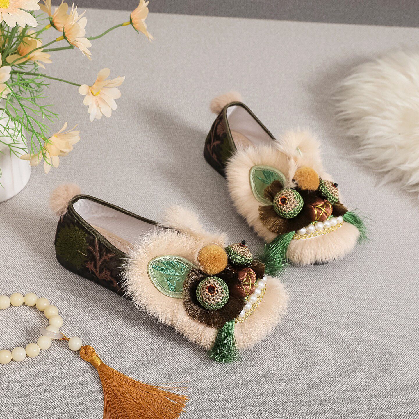绿野仙踪虎头鞋2026新款国风真兔毛平底单鞋手工布鞋国潮绣花女鞋