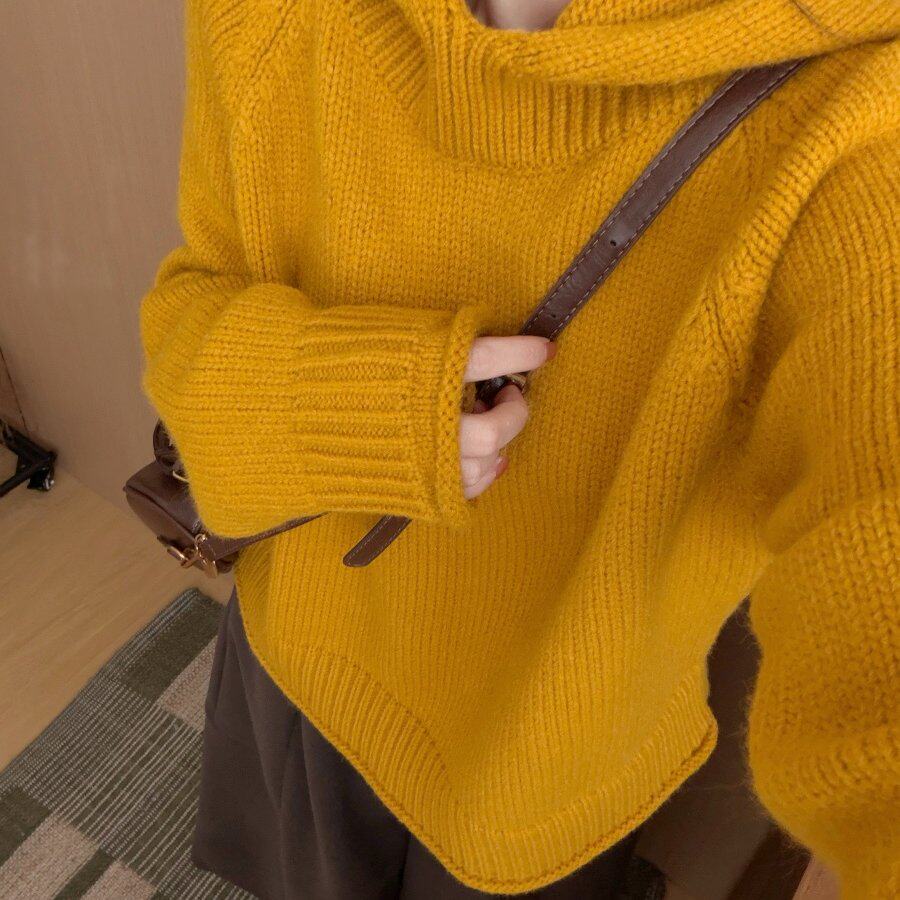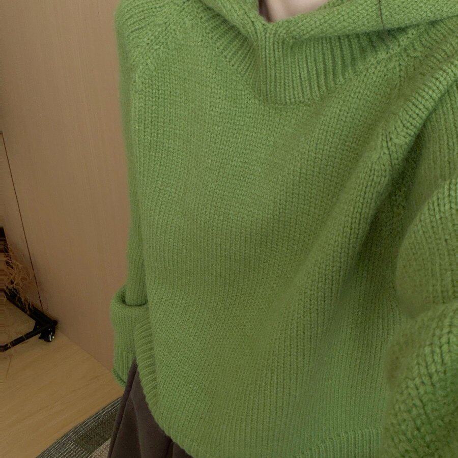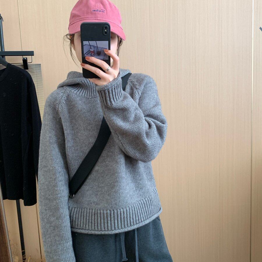 此外 连帽卷边套头针织衫女2025冬季新款宽松韩版毛衣上衣减龄款