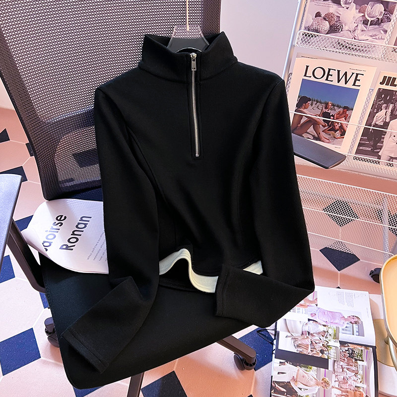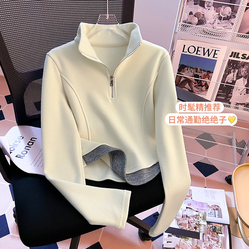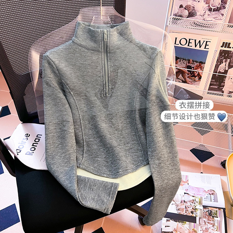 假两件上衣女秋冬小个子卫衣短款半拉链立领加厚拼接长袖t恤