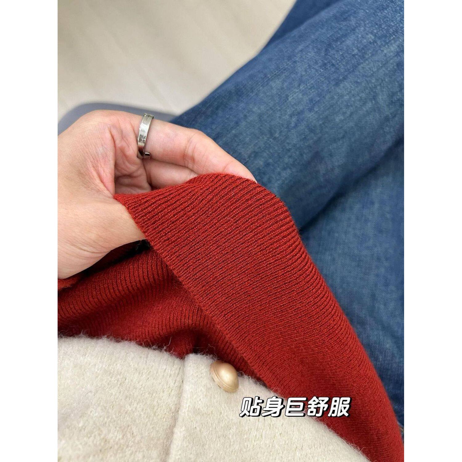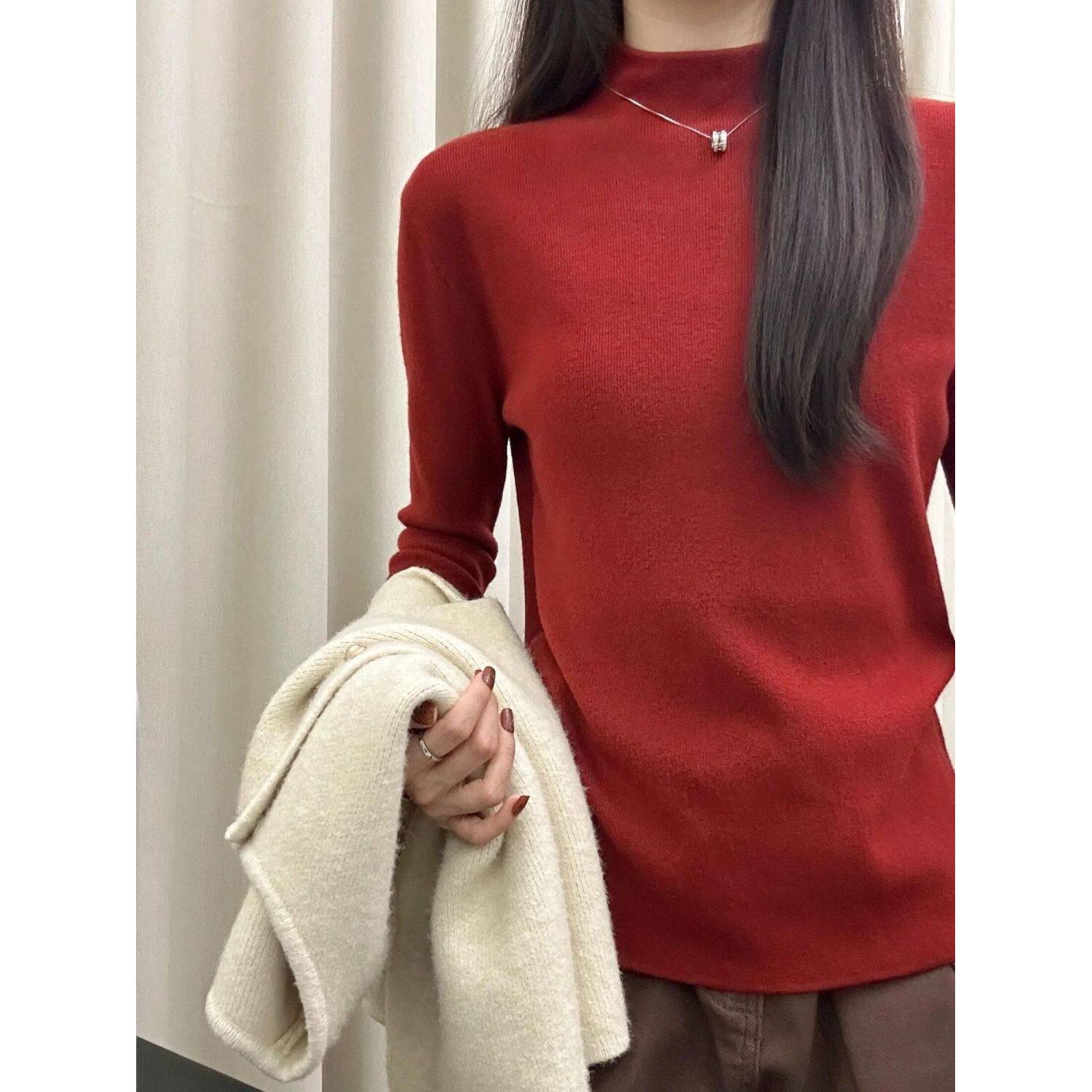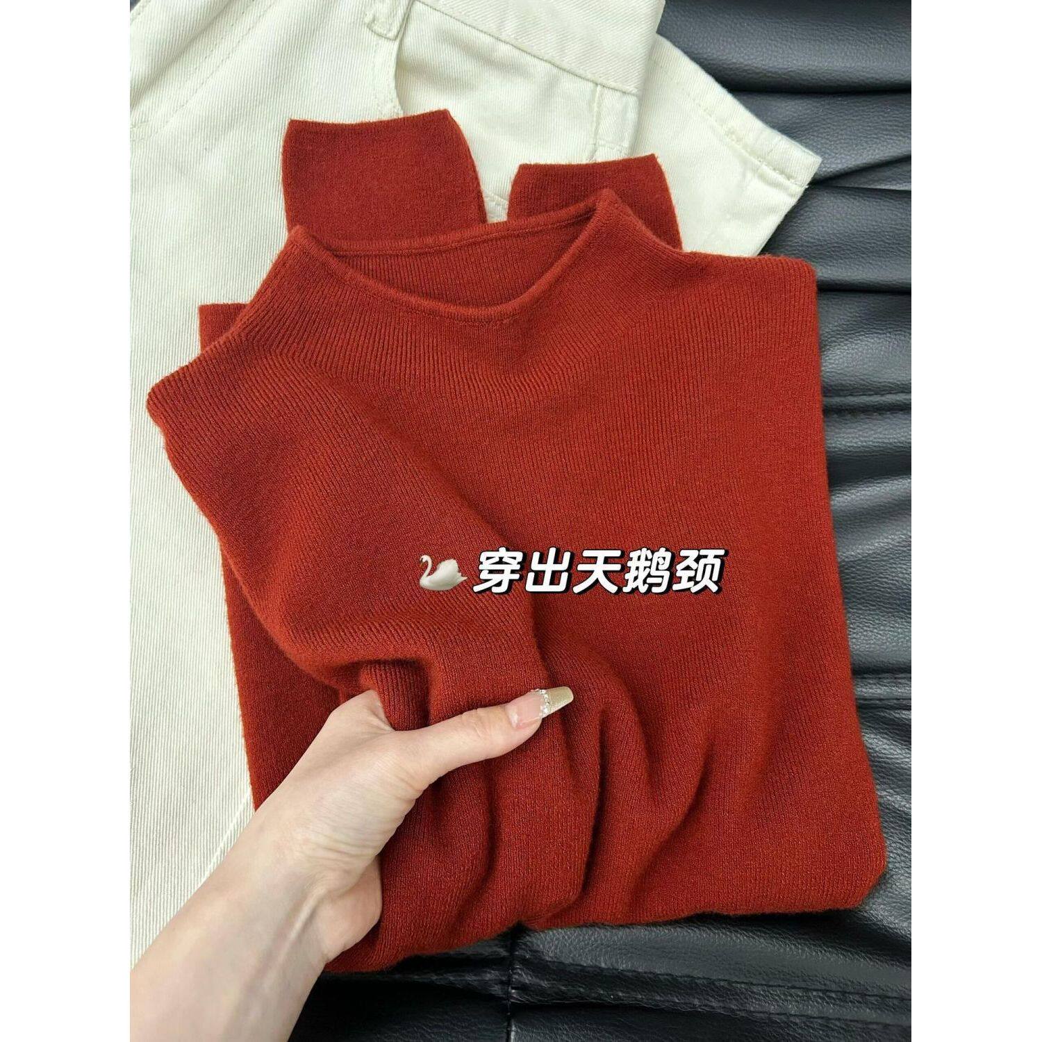 安可拉红半高领奶fufu针织长袖打底衫女秋冬季内搭修身高级感毛衣