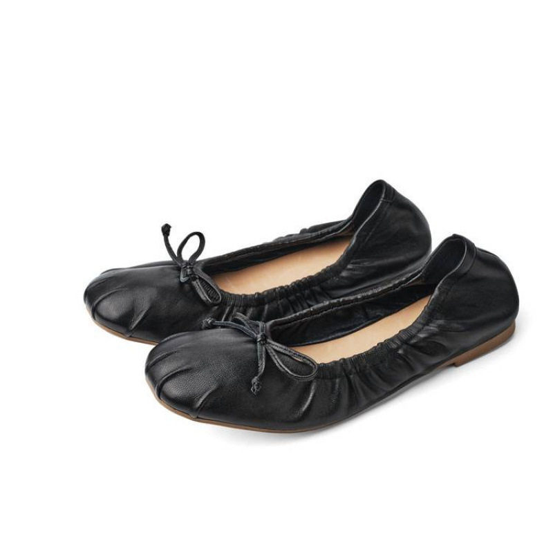 2026新款春季羊皮法式圆头浅口蝴蝶结芭蕾舞平底鞋软底银色单鞋女