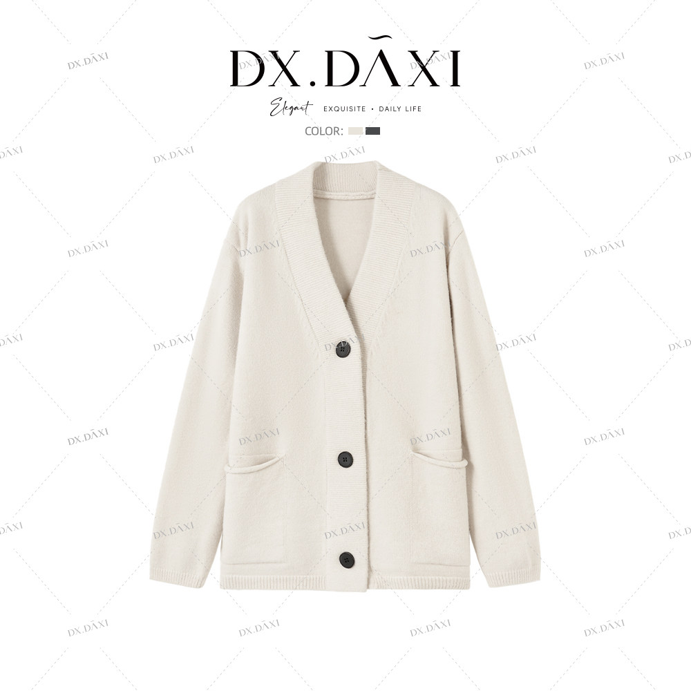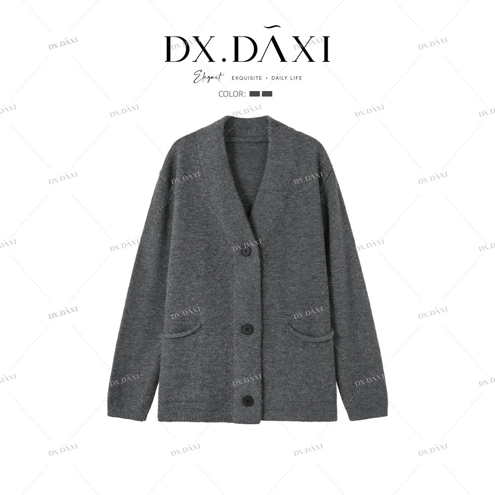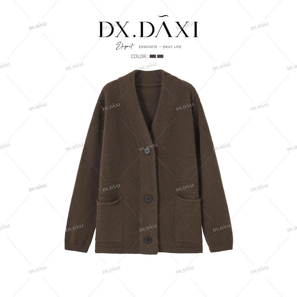 DX.DAXI【秋日午后】纯色加厚大版宽松慵懒风针织开衫外套女
