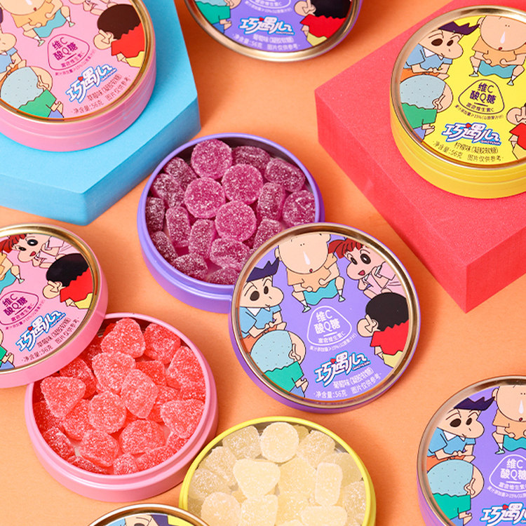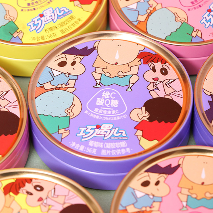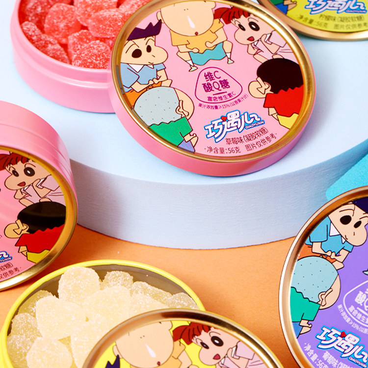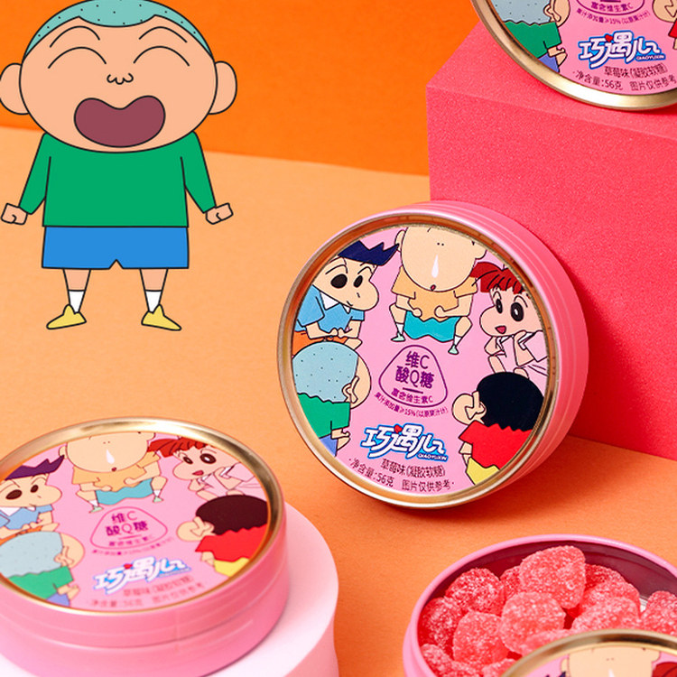 【蜡笔小新正版授权】巧遇心维C酸Q糖56g铁盒装水果糖便携小零食