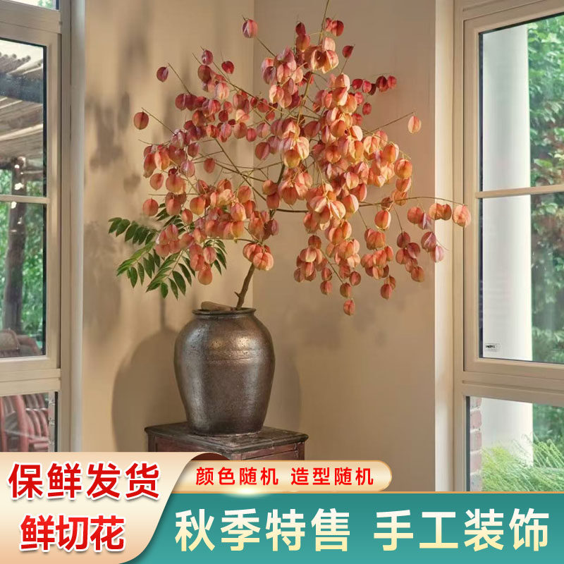 栾树鲜切绿植鲜花灯笼果手工干花室内桌面秋色复古栾树果居家插花