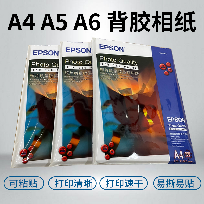 爱普生A4背胶相纸135g150g喷墨不干胶高光相纸片纸A3A5A6大头贴纸