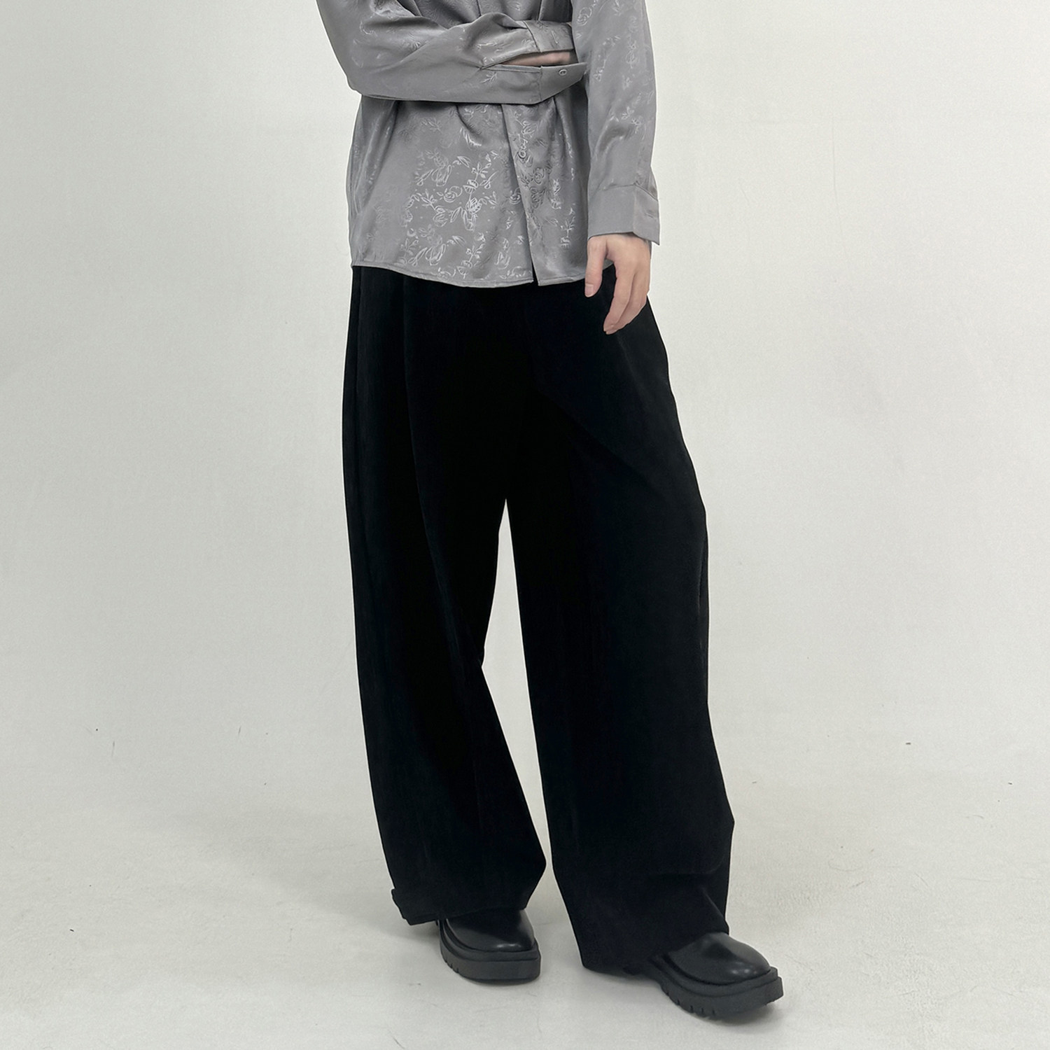 mountain tree秋冬休闲男士西裤垂坠感直筒宽松阔腿拖地绒面裤子
