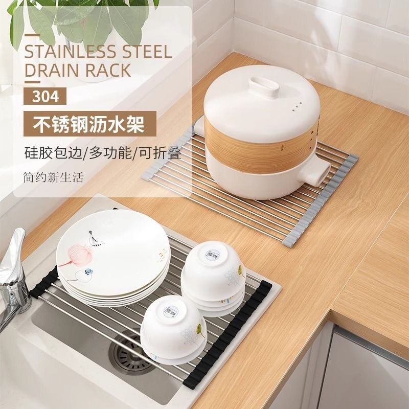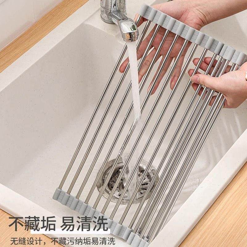 爆款可折叠硅胶厨房水槽卷水架卷帘置物架可滤水池隔热碗筷果蔬沥