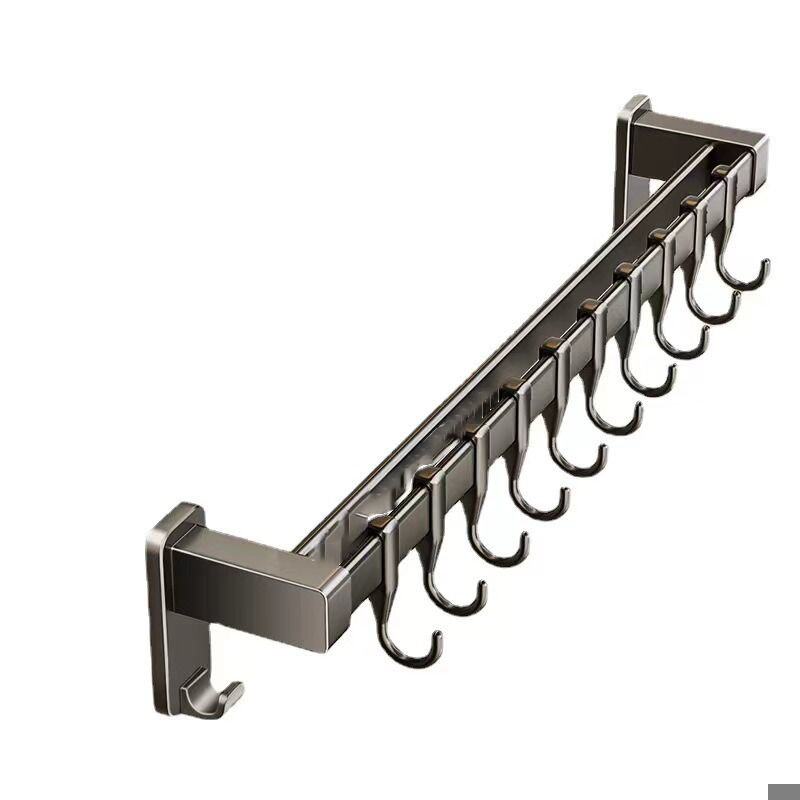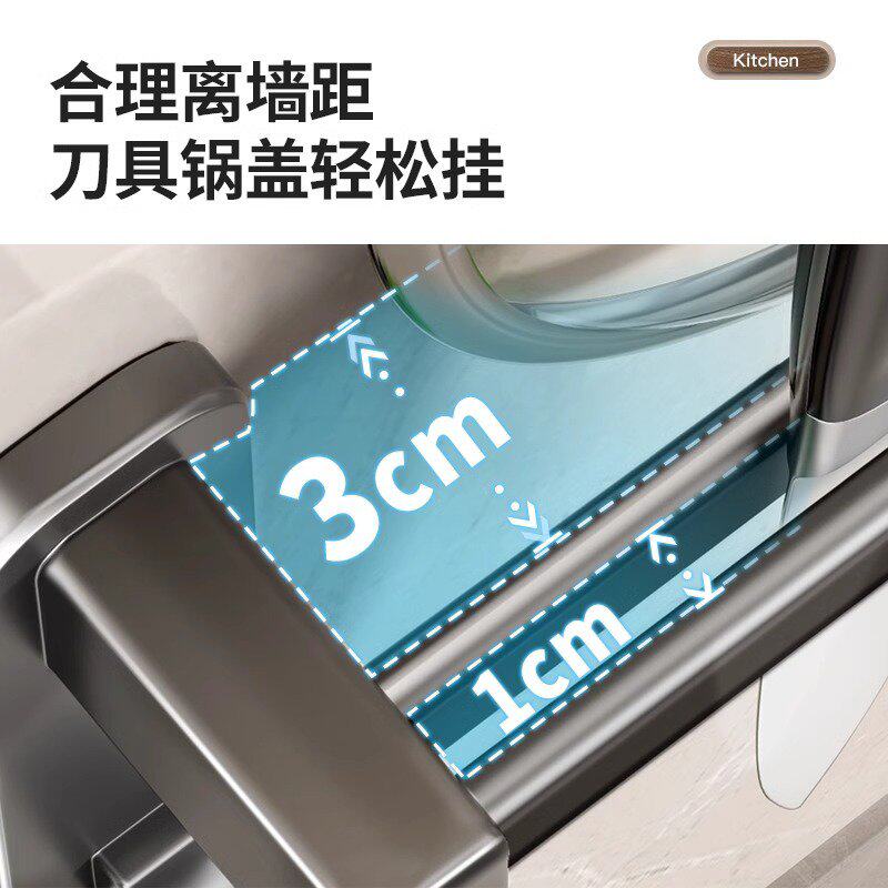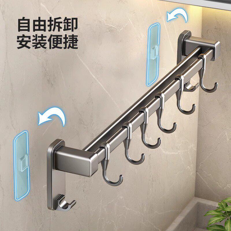 枪灰厨房挂钩免打孔挂杆厨房置物架壁挂式排钩锅铲勺子刀架收