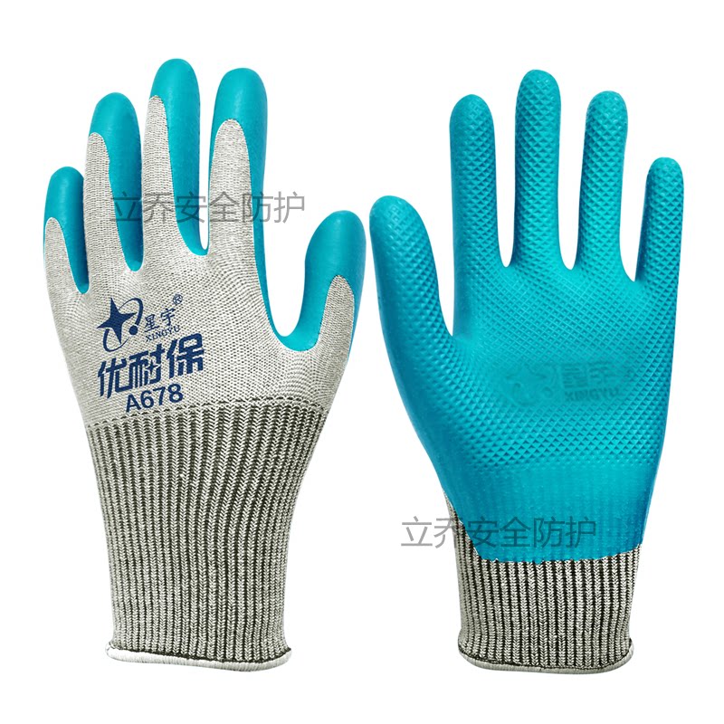 星宇手套优耐保A688A678正品男加厚耐磨工作工地干活橡胶胶皮劳保
